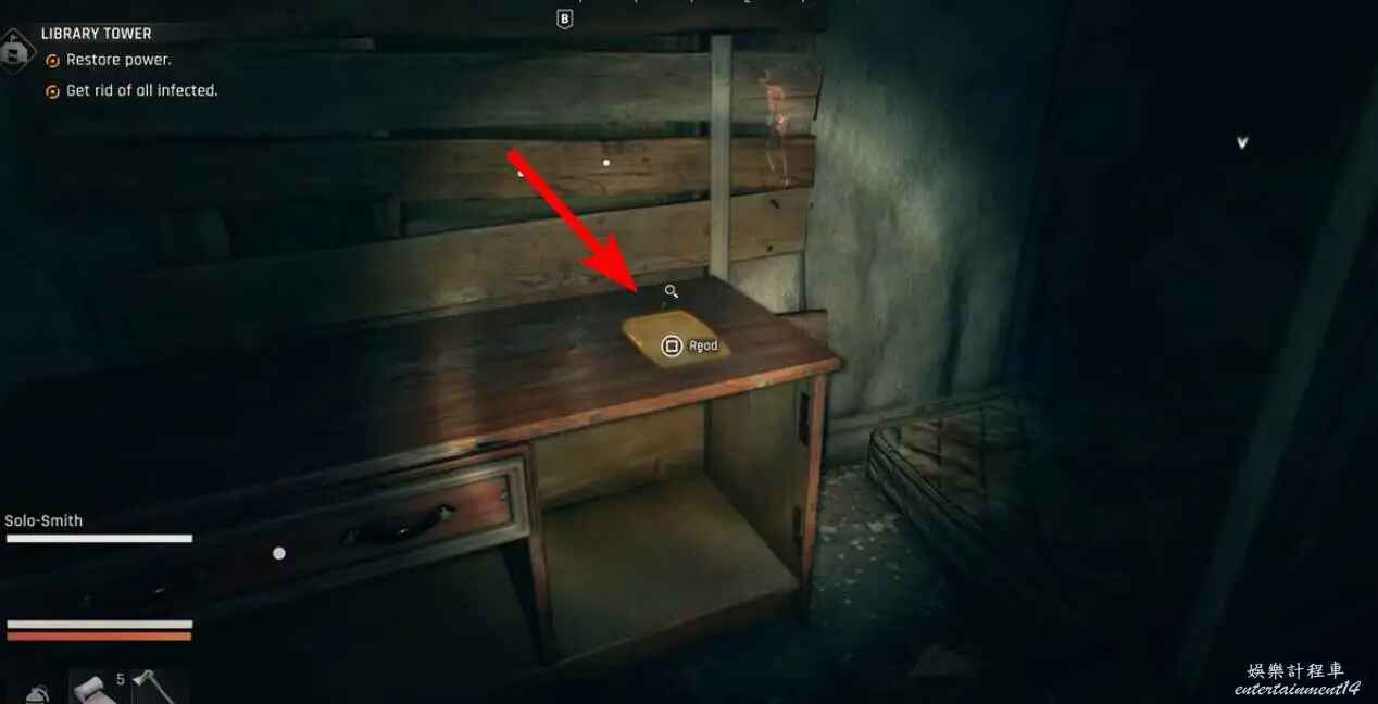 進入後,你會看到一個需要鑰匙的櫃子——緊挨著它的就是你必須拾取的筆記。