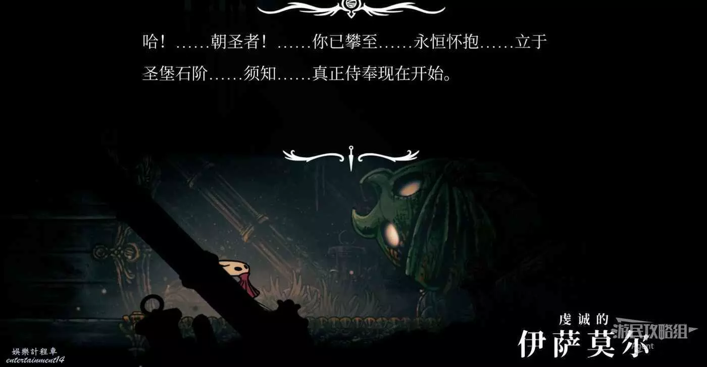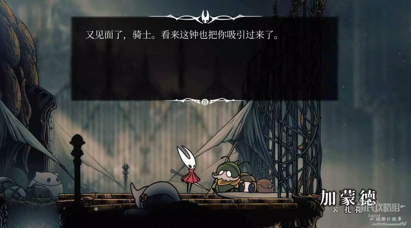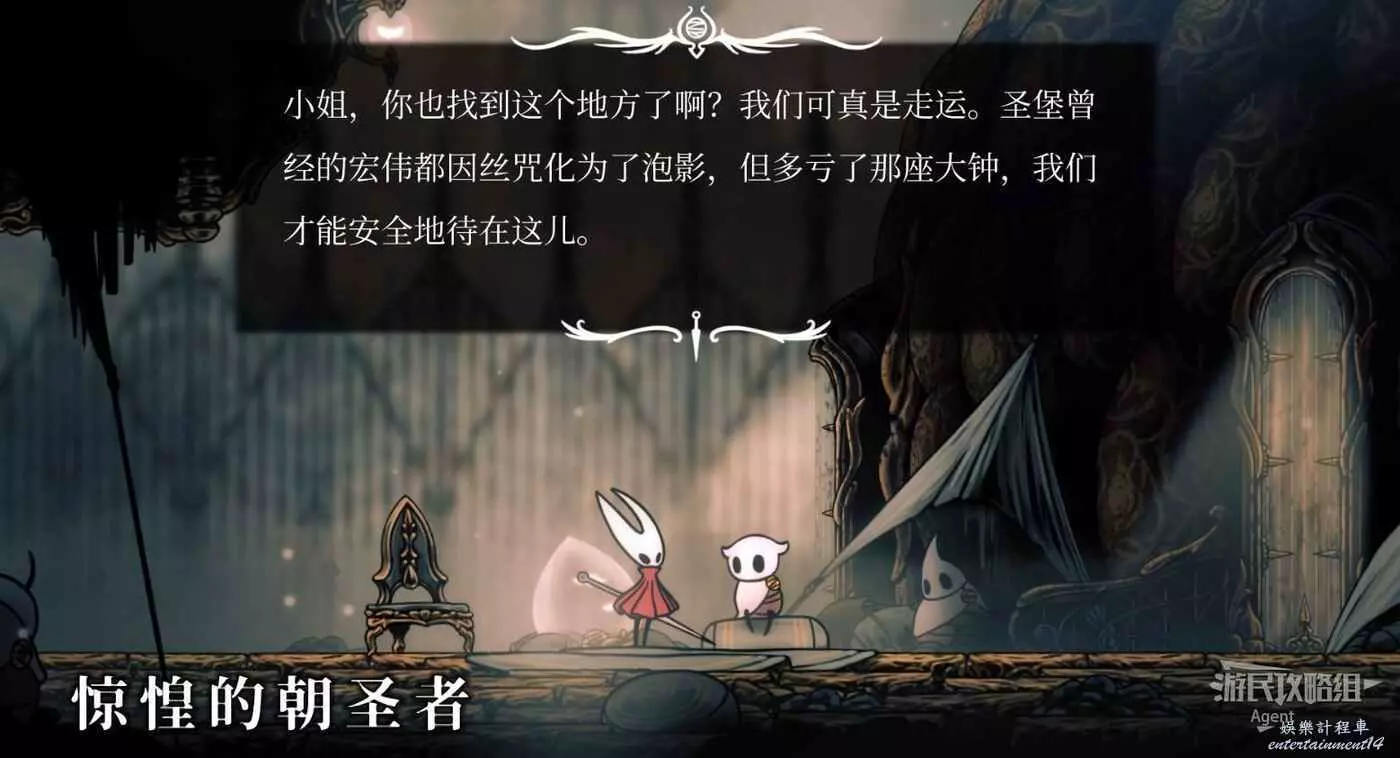 門前和高個朝聖者對話,之前在路上的五個鐘(解鎖長椅的鐘)都敲過了,直接彈琴就行,擊敗末代裁決者門就開了。