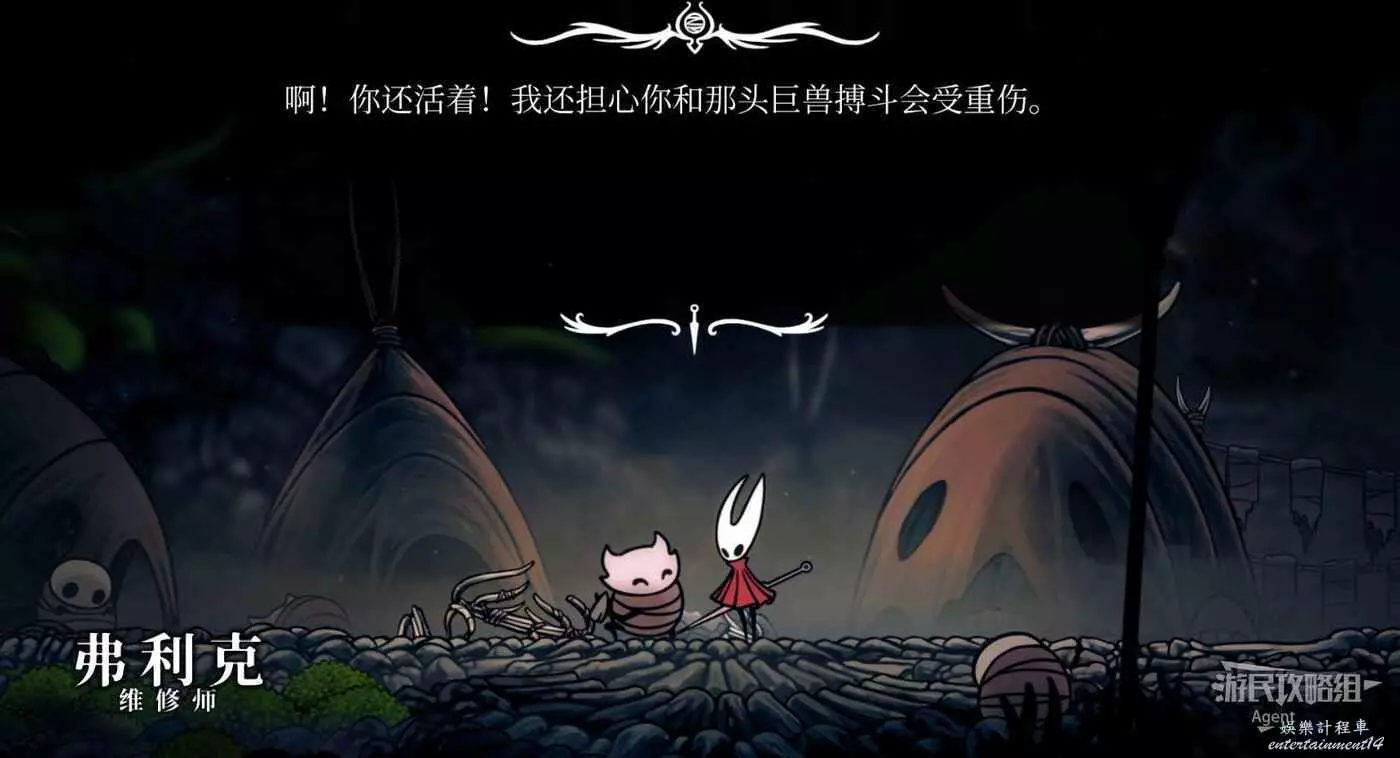 然後從頂部往右滑翔,在右上角的洞裡見到克魯爾&班金,接到任務“蟑螂內臟”。