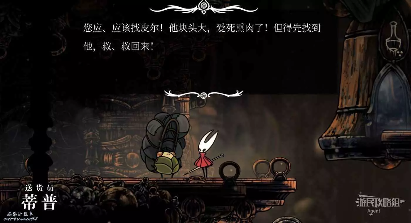 先去右邊的牢籠區域,往上走找到送貨蟲皮爾。