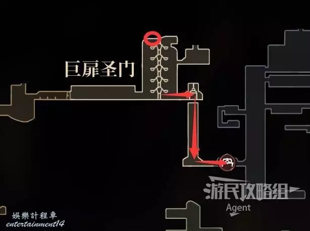進門往右走,在機械模型處直接購買【巨扉聖門地圖】。