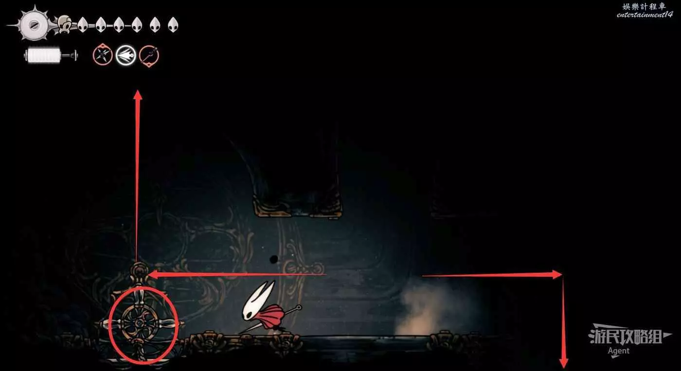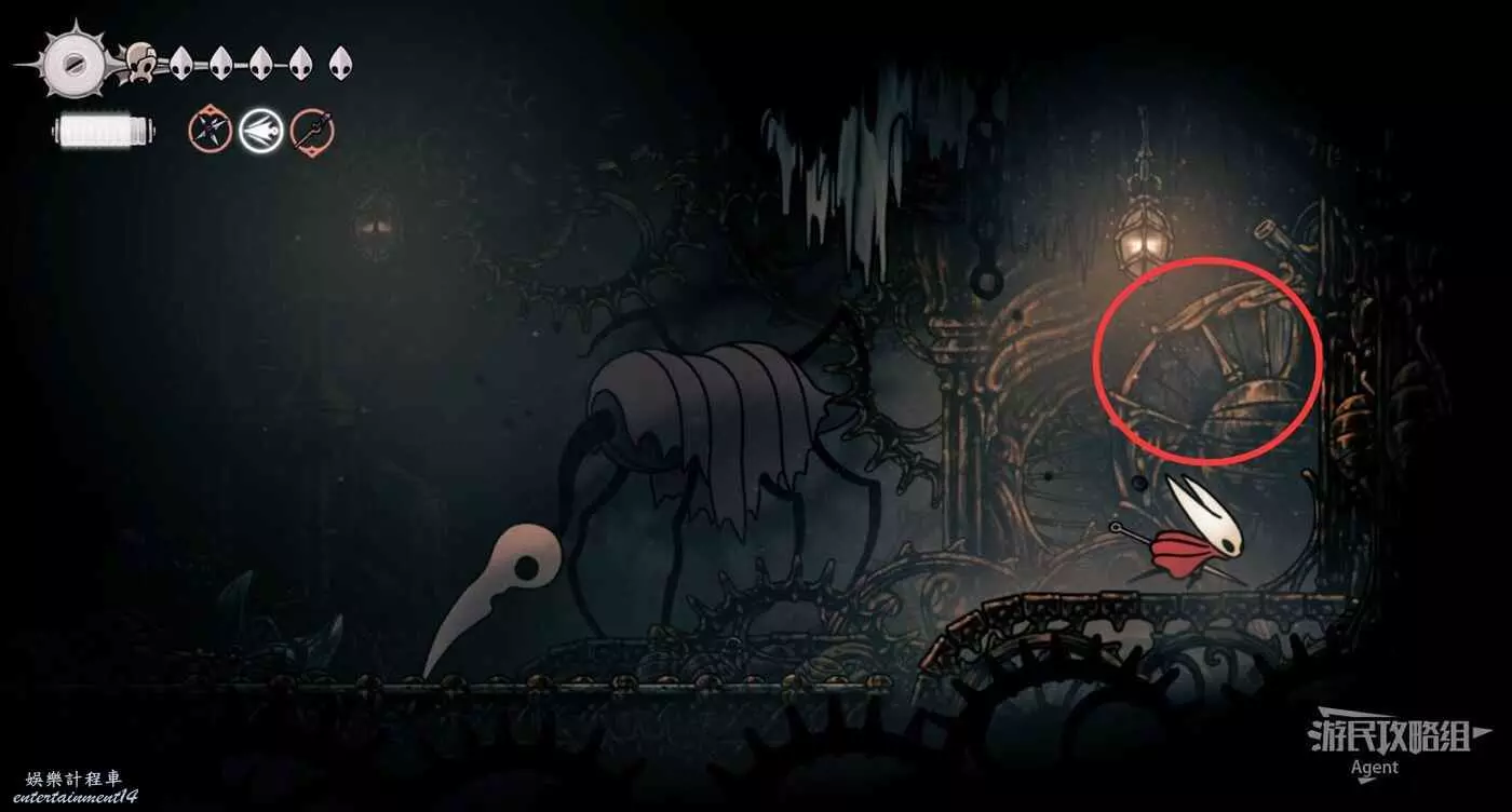 到下面打通路,然後注意右側有個狹窄的區域,先從底部進去敲轉盤釋放氣流,然後從中間打破牆進去,隨氣流上到頂有只跳蚤。