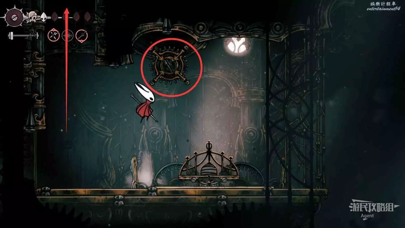 往下走一點,從機樞核心下半部的門,來到機樞核心上半部。敲齒輪放下銅環,以後就可以用飛針衝刺直接上來了。