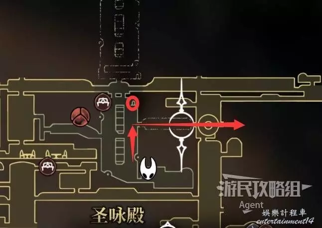 右邊暫時過不去,往下走,去左邊岔路大戰後走到頭拿到【面甲殘片】,順便打通通往聖詠殿的路。