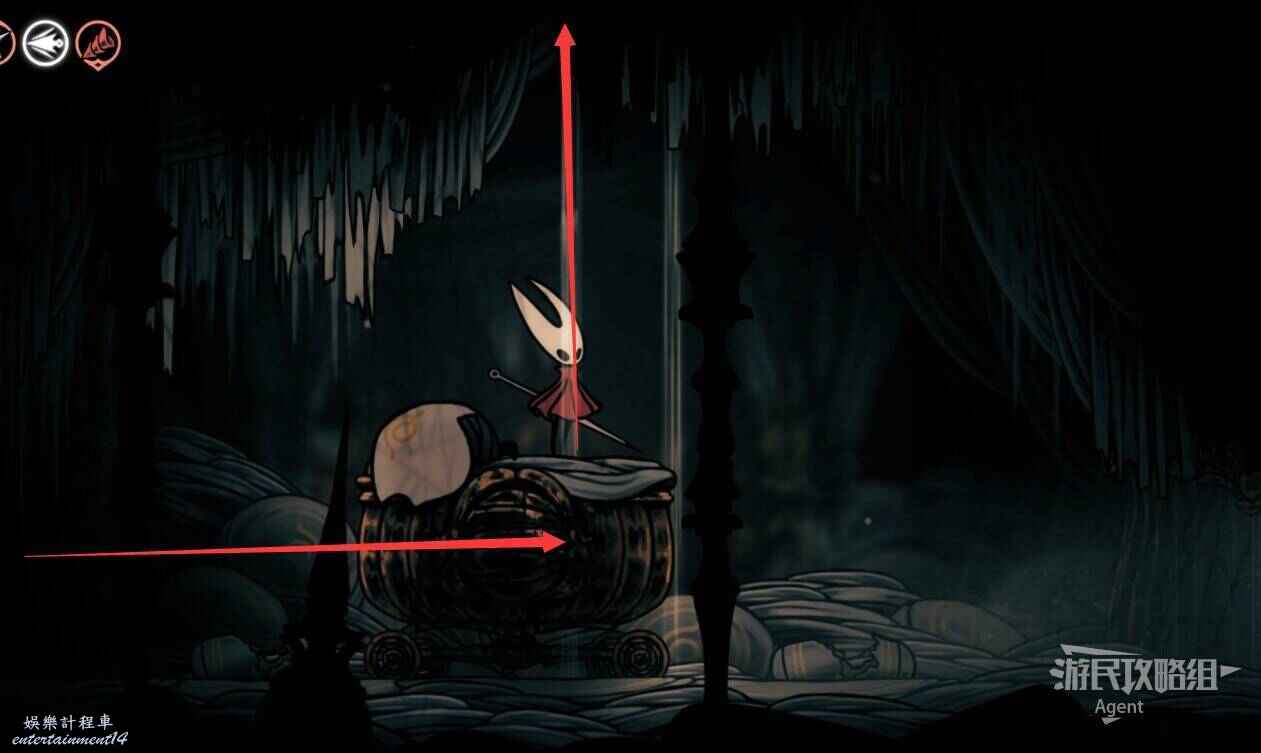 到下圖位置的岔路撿到朽損念珠串,然後把車往右敲,踩著小車跳上去有隱藏的門。