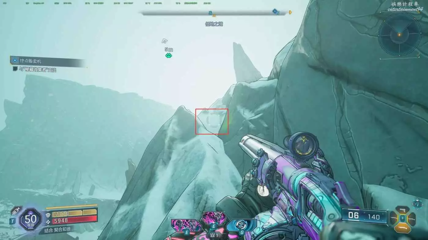 注意,上來兩個斜斜的石頭,站定後,往對面框住的豁口跳,可能有空氣牆把你往外邊滑,你滑的時候連跳,就進去了。