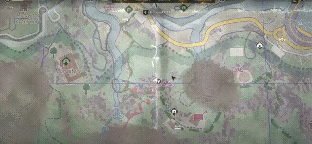 從修道院向東南方向前進,沿著登山道來到野餐區。在露天棚屋的桌邊會發現一具屍體,藏寶圖就放在屍體旁邊。