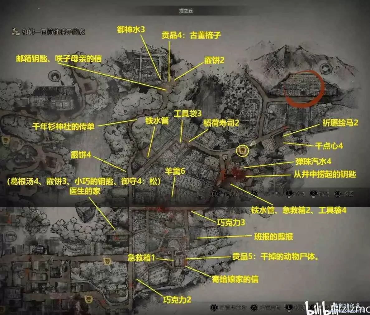 返回之前籃圈的神社,從那裡開始收集右側地圖。