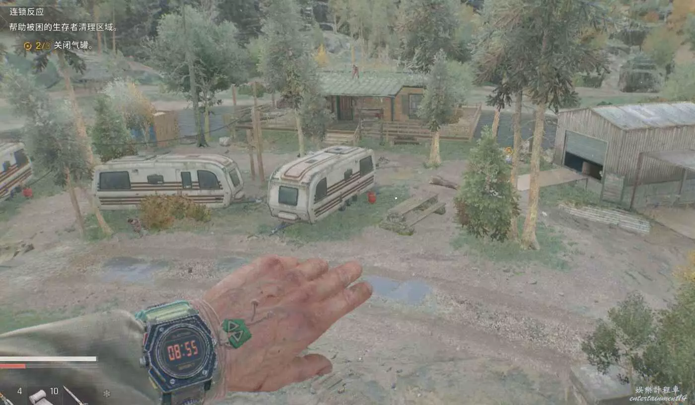 垂死之光 困獸 無限刷怪方法 25 9 月 2025-09-25 廣告 來源:互聯網 如圖所示,玩家接取支線任務連鎖反應,此任務就是需要玩家關閉氣罐。 在完成這個任務的時候,玩家只需要清理2個,留下1個氣罐。 如圖所示背後會有一個安全屋,做任務時留這個氣罐不關。 晚上回去休息,早上回來接著刷,這樣既不耽誤休息,還能持續完成任務。 非常的簡單又高效,能讓任務進度快速推進,也可無限刷怪。