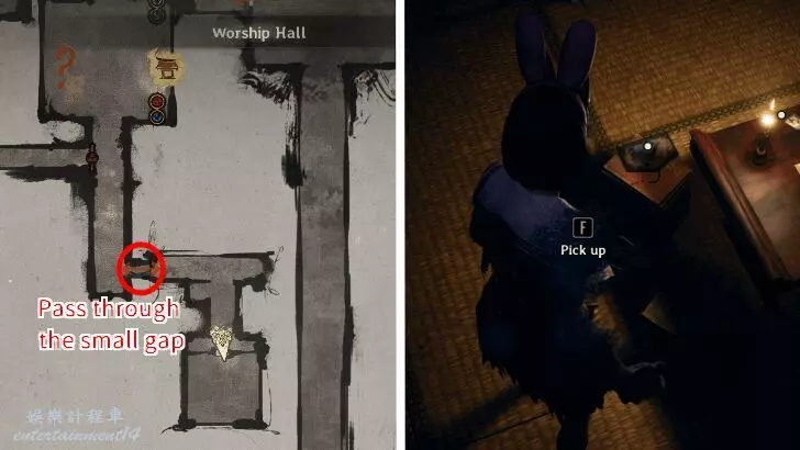 第一扇稻荷之門可以在回廊(裡世界) 區域找到。從本章節的起點出發,進入最西端的房間就能發現這扇門。開啟後會獲得文檔《家族之詔》和飾品“刺繡束口袋”。