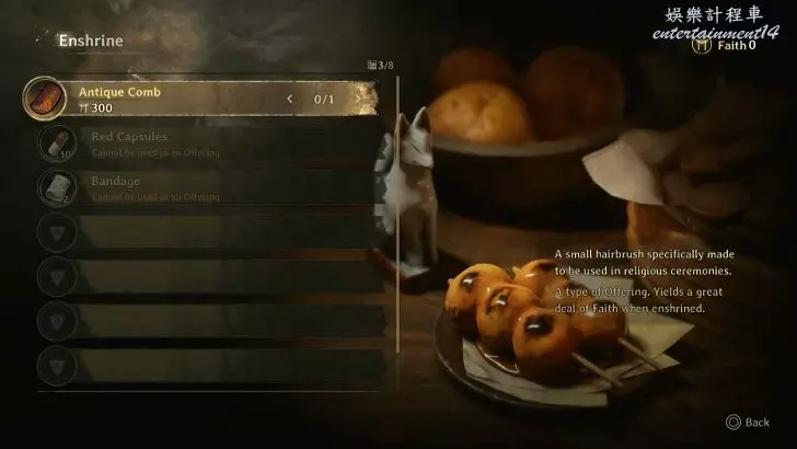 最基本的方式是在散佈各處的神龕中進行供奉。你可以將背包中的各種物品作為貢品獻上,以換取等值的信仰。