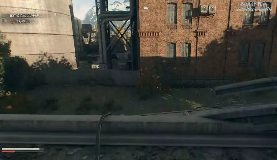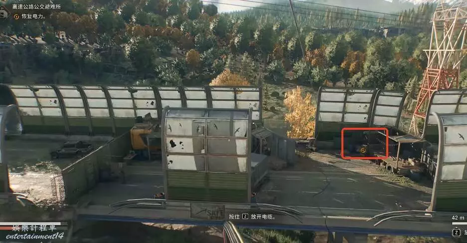 垂死之光 困獸 高速公路公交避難所位置 29 9 月 2025-09-29 廣告 來源:互聯網 如圖所示,玩家就可以直接前往工業區的高速公路公交避難所。 玩家進入地圖,需要清理眼前的喪屍。 關閉綠色的鐵門,避免喪屍的攻擊。 前往對面紅樓的房頂,在這裡可以恢復電力。 將電纜插入配電箱。 利用頭頂的線到達對面的位置,將另一頭插入即可恢復電力。