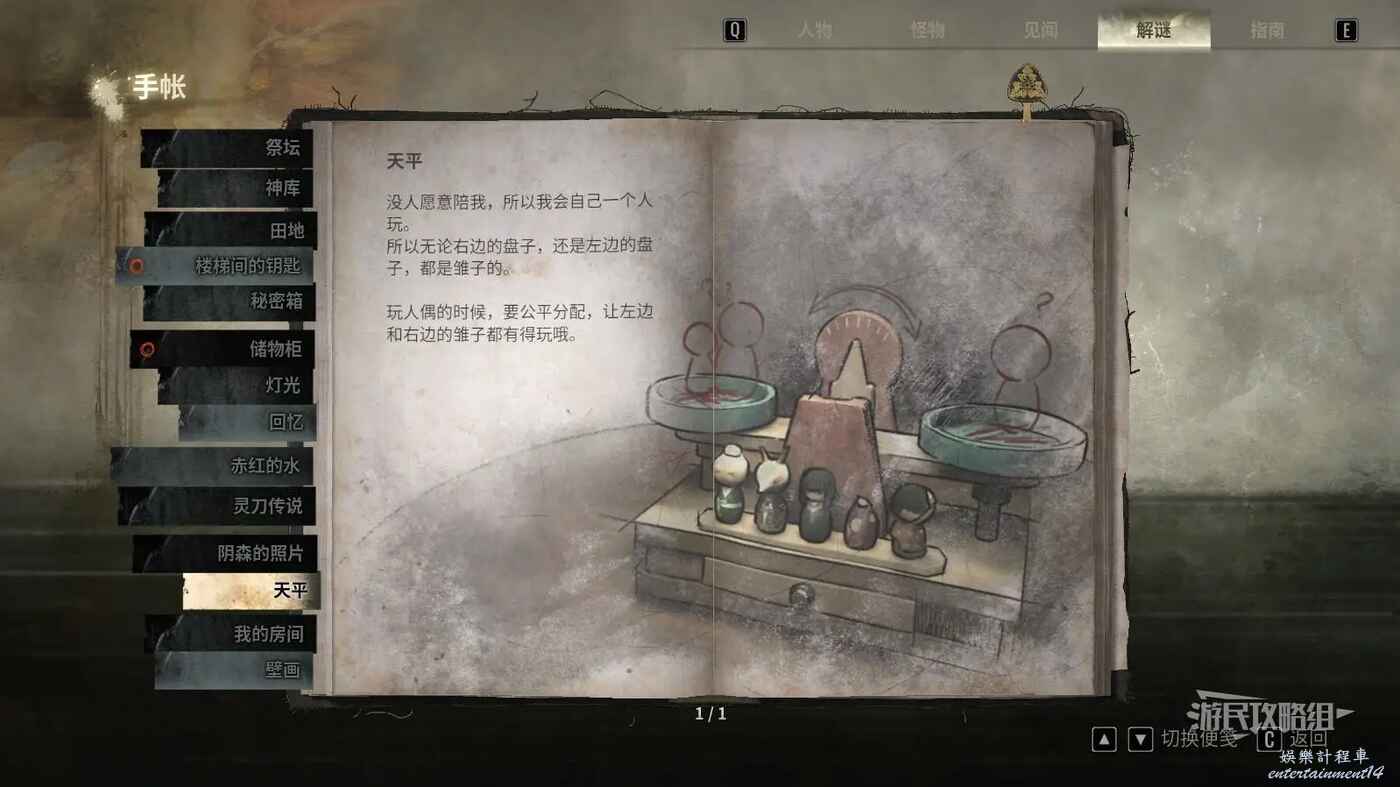 【結局4-寂靜戎之丘】需要將5個玩偶放在天平上保持平衡。