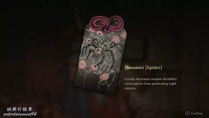 開啟郵箱後,你將獲得蜘蛛護身符。這件護身符的效果非常實用:裝備後能大幅降低輕攻擊時的武器耐久度消耗。對於經常使用武器進行戰鬥的玩家來說,這件裝備能有效減少維修武器的頻率,顯著提升探索時的續航能力。