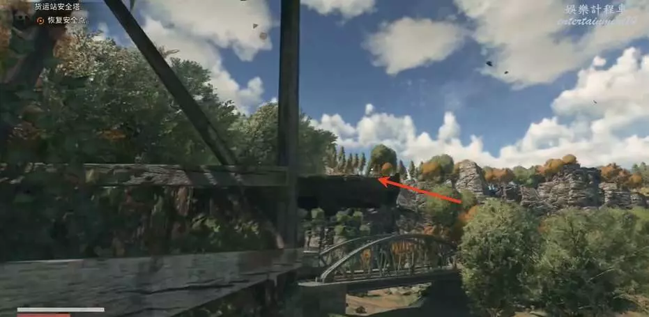 垂死之光 困獸 貨運站安全塔位置 30 9 月 2025-09-30 廣告 來源:互聯網 前往工業區如圖所示位置,就是貨運站安全塔。 看到貨運站安全塔,順著搭建一直往上攀爬。 爬到二層,跳到對面平台位置。 繼續到對面的木頭平台。 放下梯子繼續往上爬。 如圖所示位置,即可進入屋內。 進入右手即可看到電閘,恢復電力。