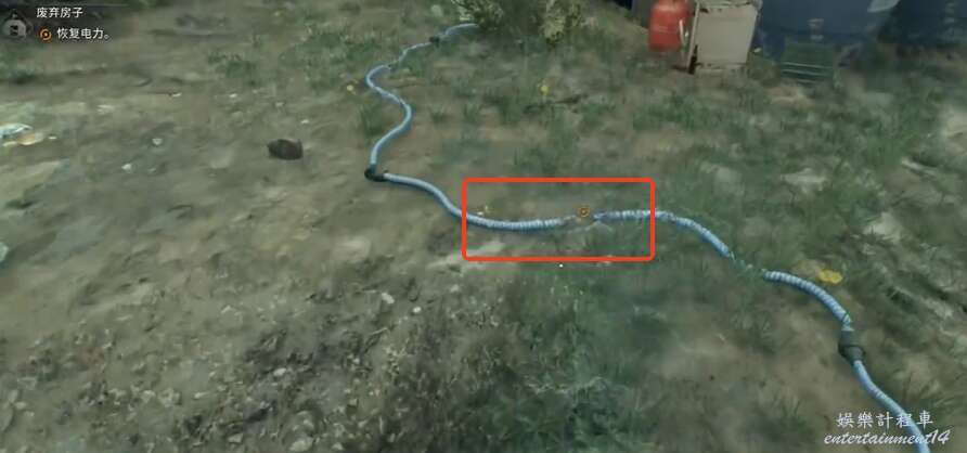 來到院子,查看藍色的電線。