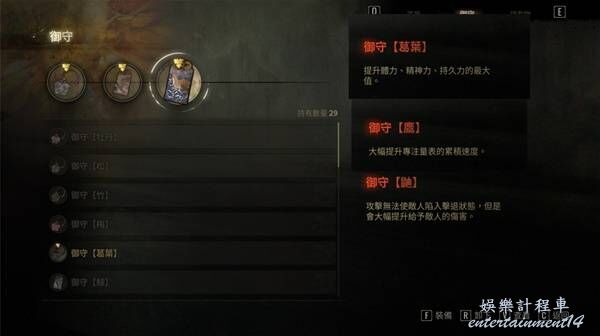 核心特色:專注於蓄力發動強力的“飛天一擊”,能瞬間打滿敵人的失衡槽。即便裝備了“鐮鼬”這類清兵技能,其威力也足以擊倒煩人的小型敵人。