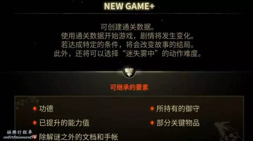 繼承滿足條件的通關存檔(需已達成至少兩個結局)、重新獲取靈刀(除初始地藏外任意位置或千年杉)