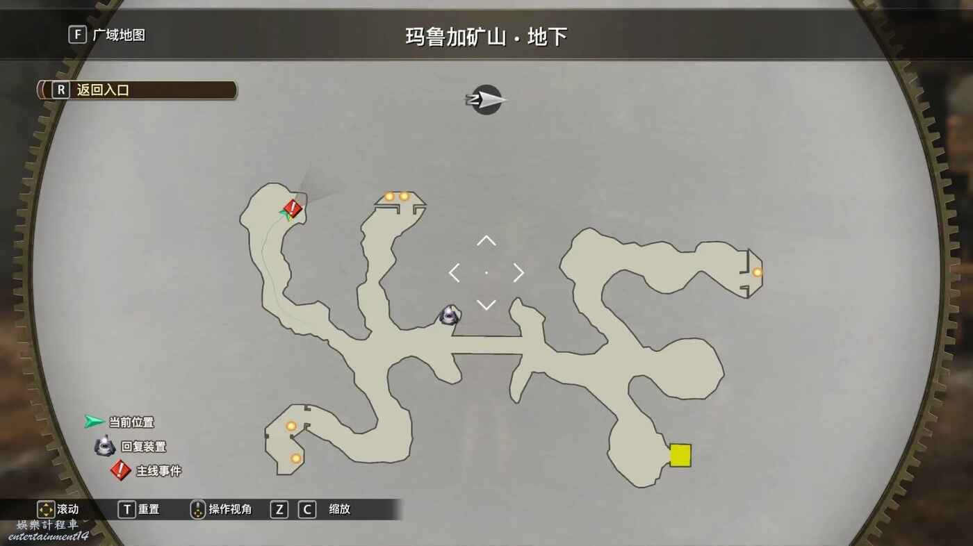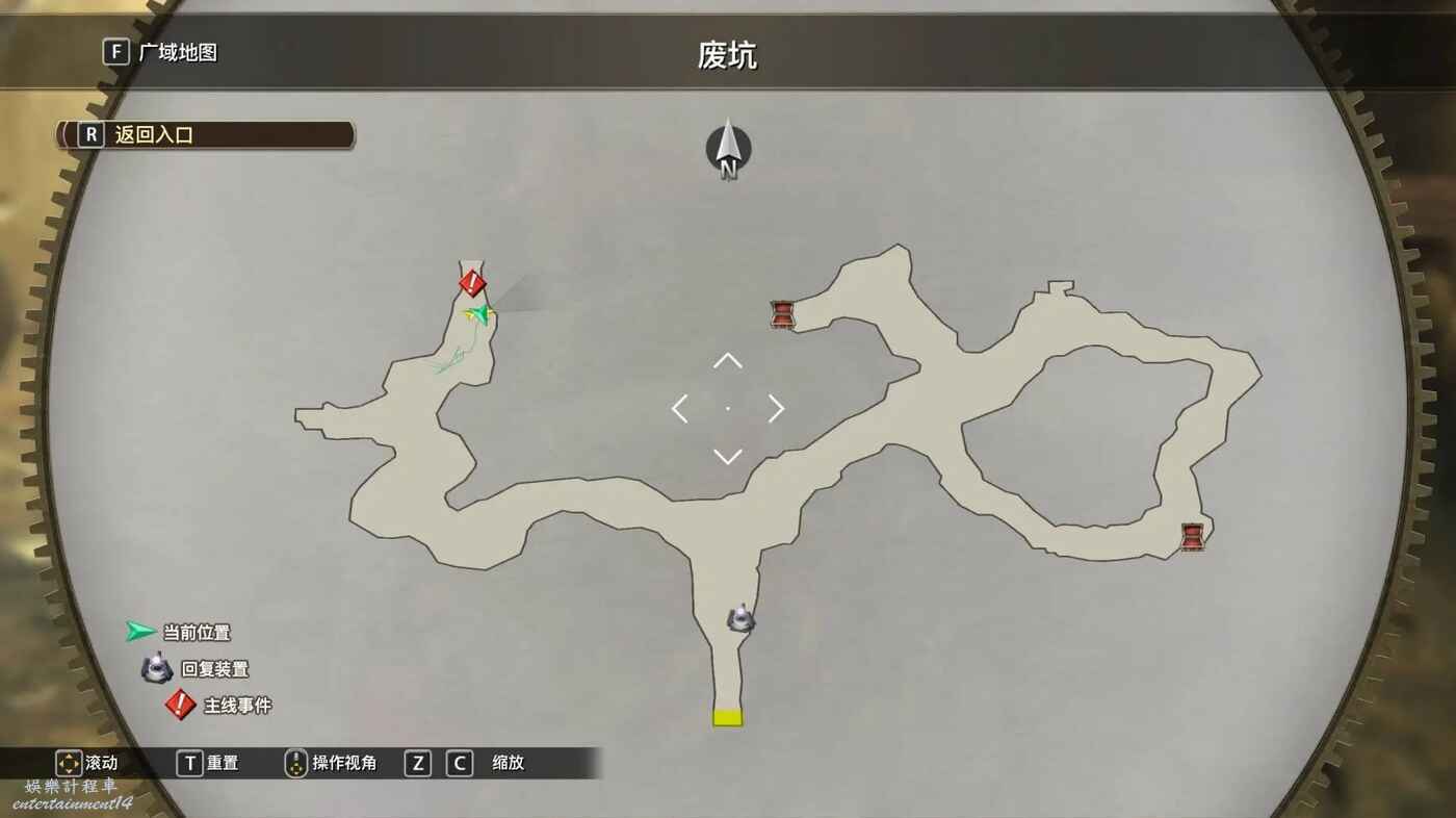 調查藍色嘆號的升降機有小劇情,調整軌道方向朝右,調查礦車,選擇:乘坐礦車