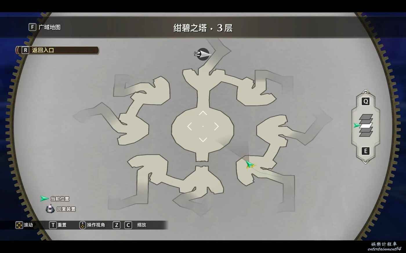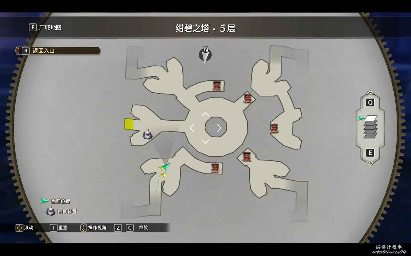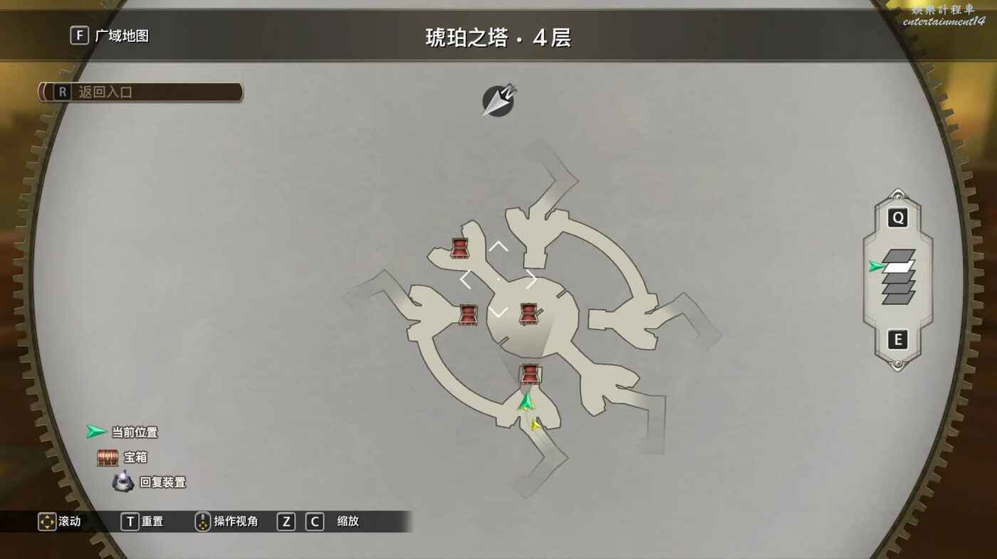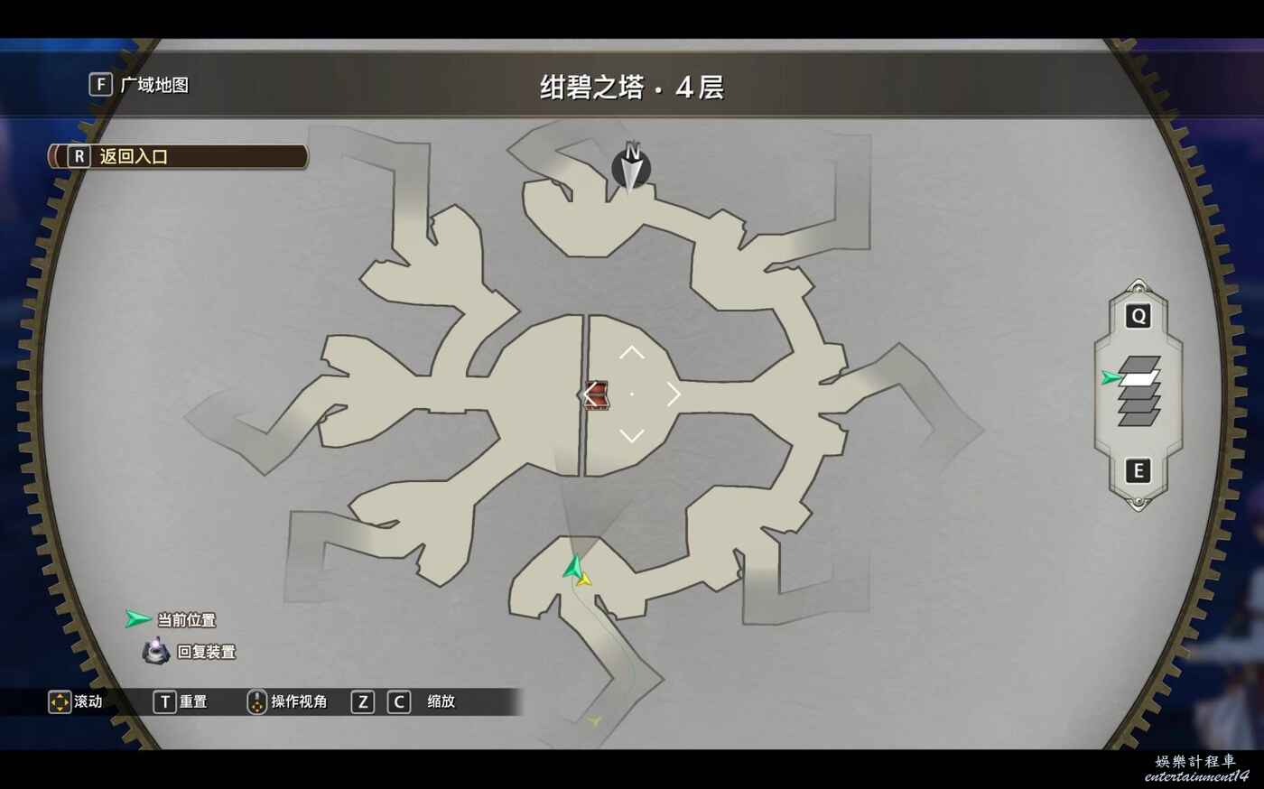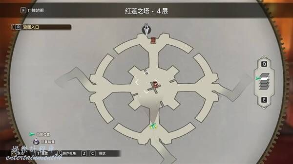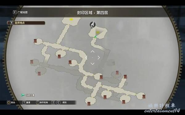 第四層分為上下樓,所有岔路處頭頂都有路標指向正路,往反方向就能探全地圖
