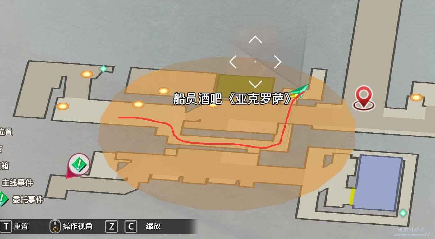 與紅色嘆號處的緹歐對話觸發劇情,進入民房觸發劇情