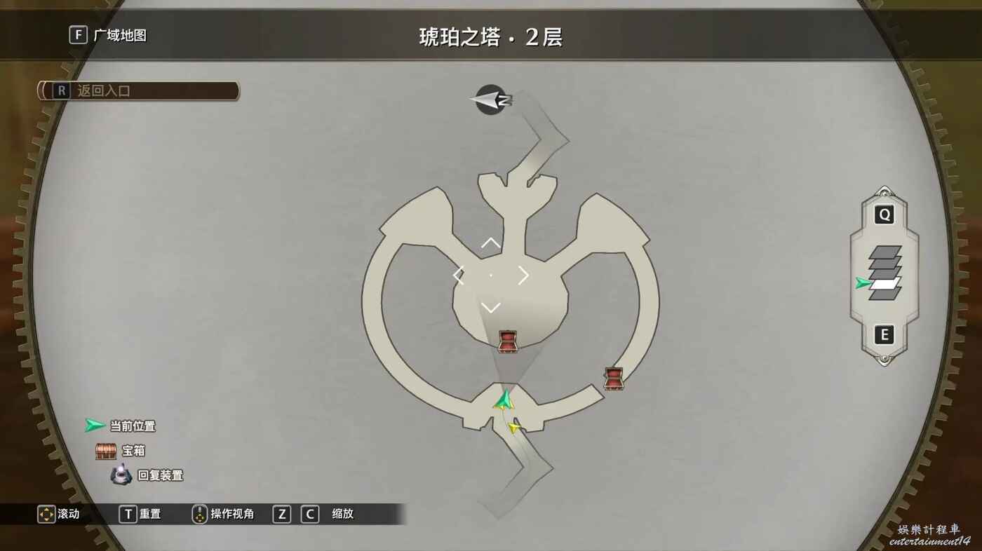 區域二底部岔路往西邊去有電梯上到一層有一個寶箱,之後再往另一個正路走