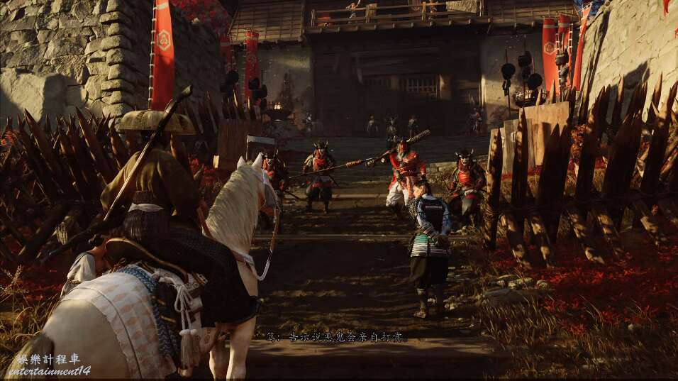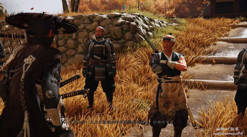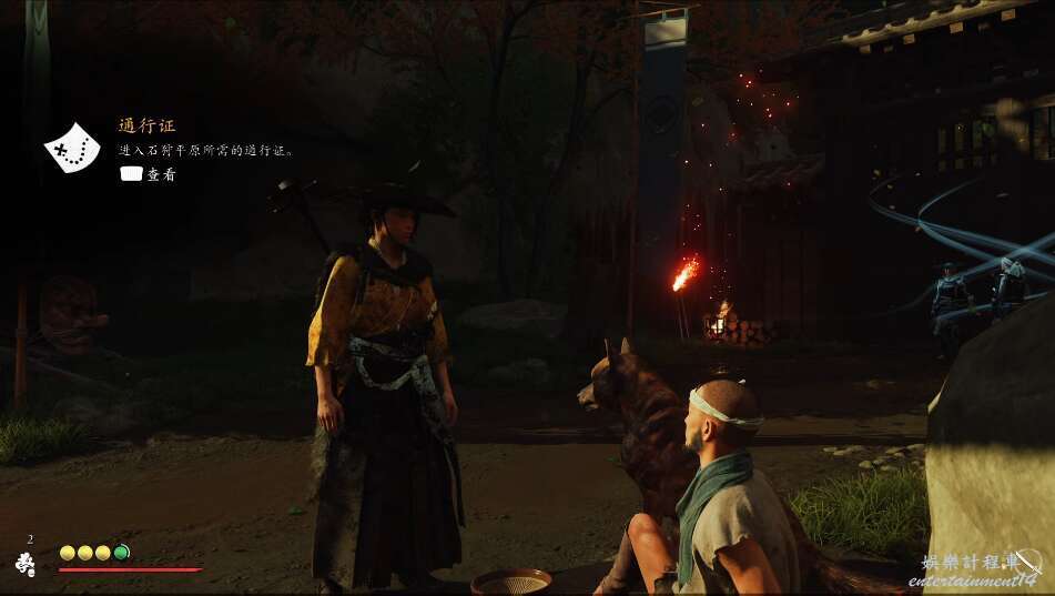 我們需要前往石狩平原調查,但是路上遇到了武士,他們守住了門口,不讓沒有通行證的人靠近。