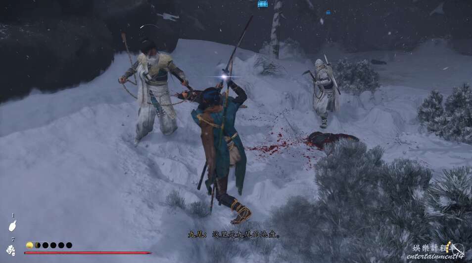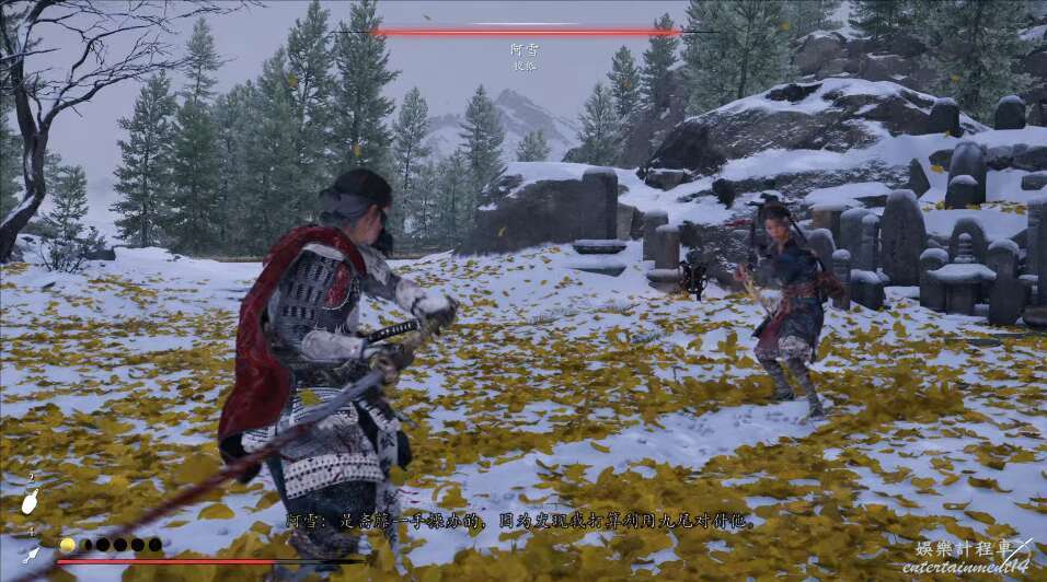 在這裡,我們即將與阿雪進行最後的戰鬥,也是克服我們心魔的戰鬥,在戰鬥時因為致幻的效果,場景會不斷變化,阿雪和狡狐會不斷交換。
