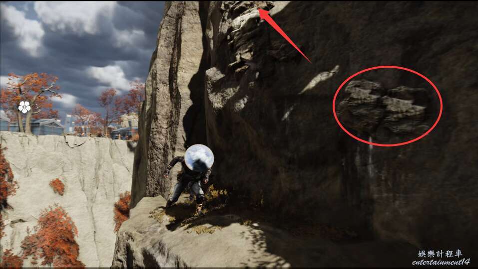 順著風向一直向上攀爬,來到斷崖處,我們需要跳躍到攀爬點。