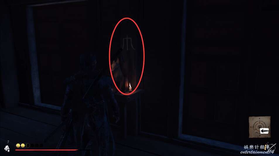 到達半兵衛的家中,觸摸台架上的單刀,觸發劇情。