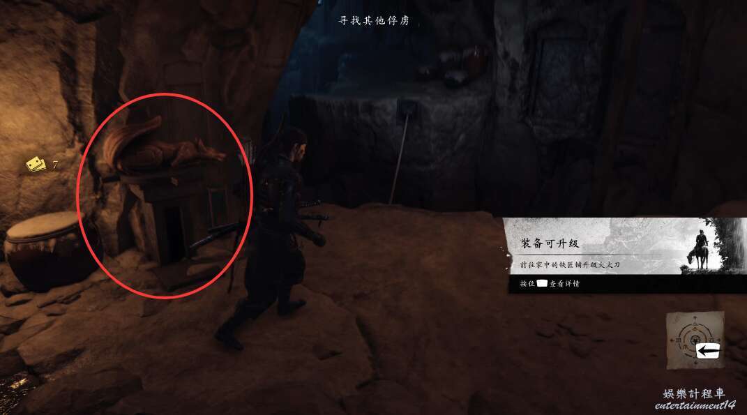 上來之後進入房門,右手邊能獲得忍者鎧甲,向前朝著箭頭走即可離開此地。