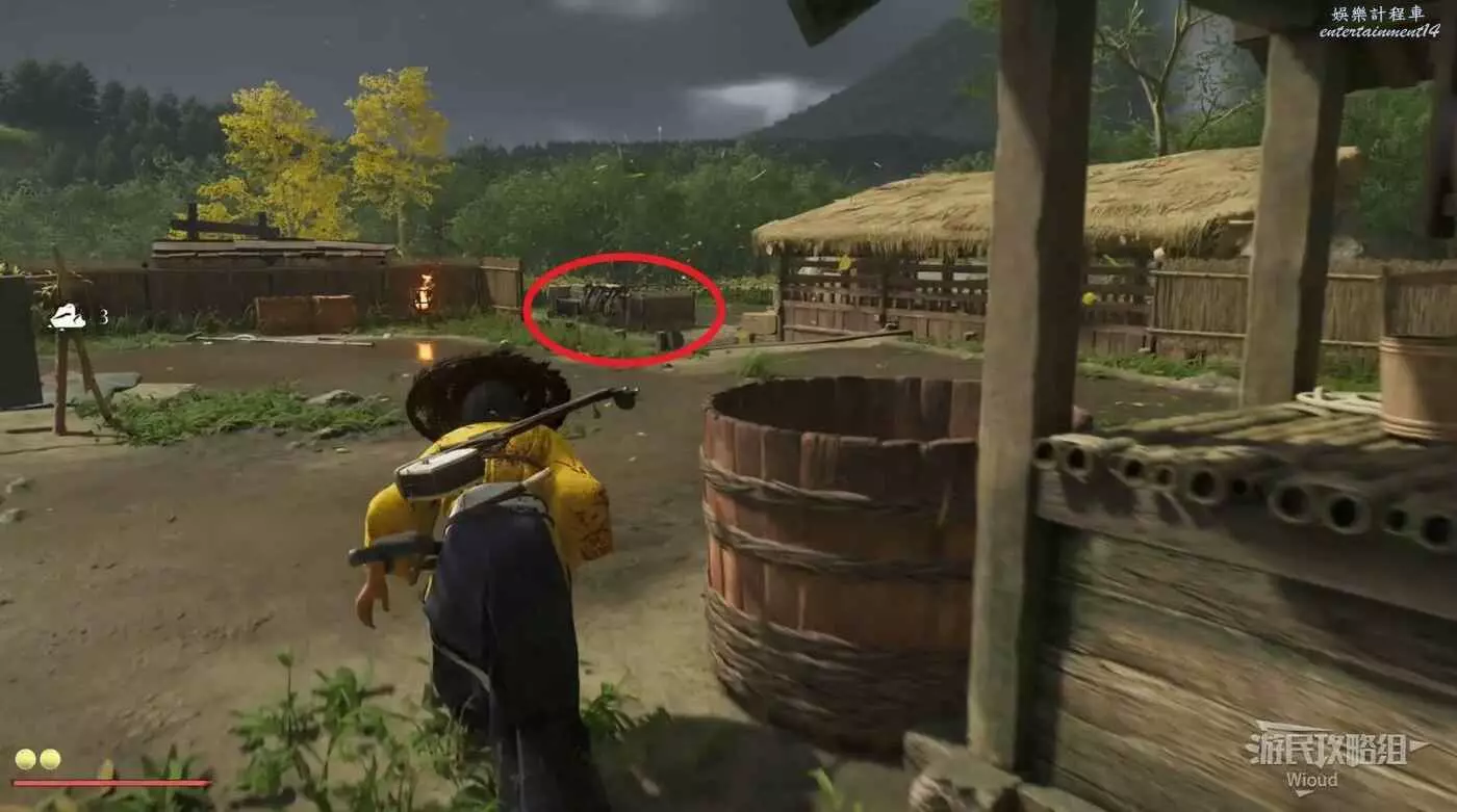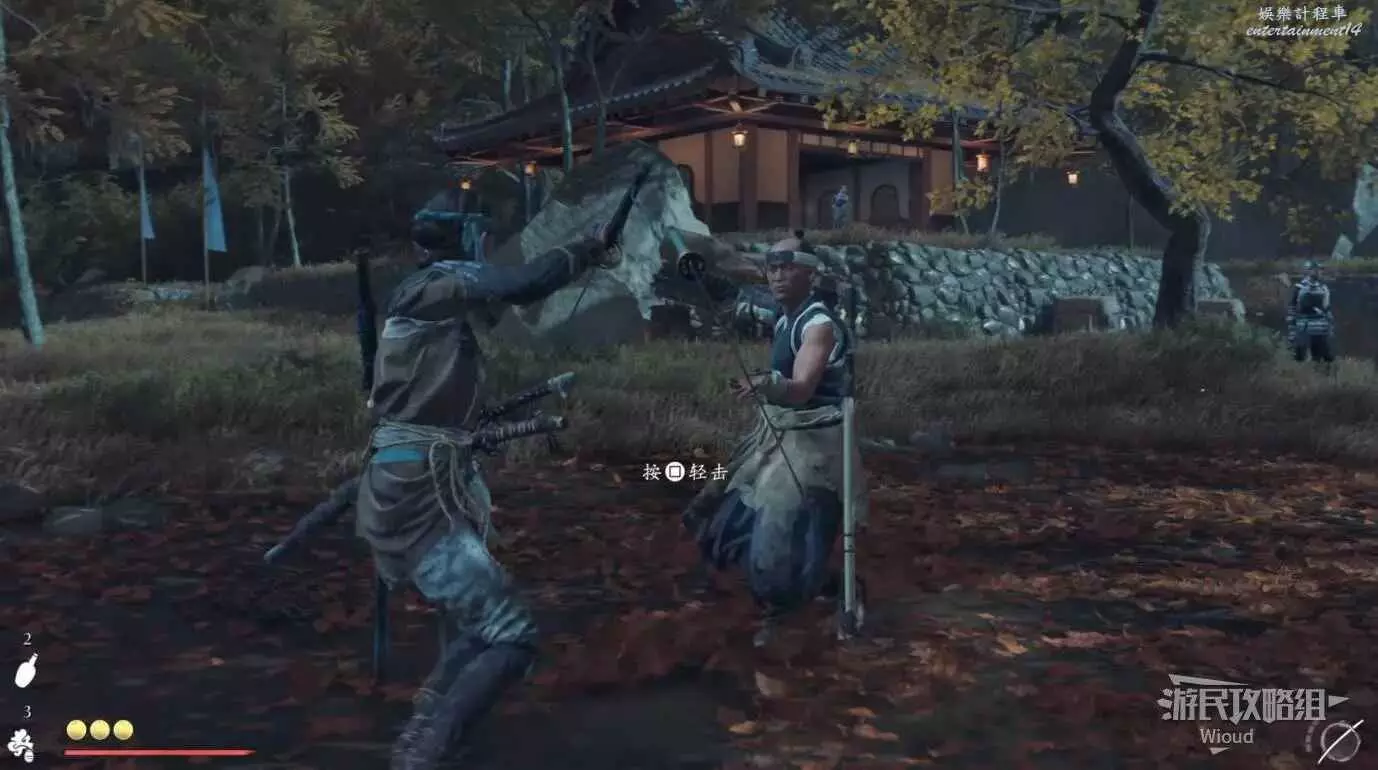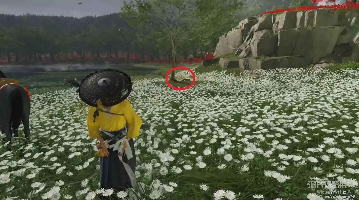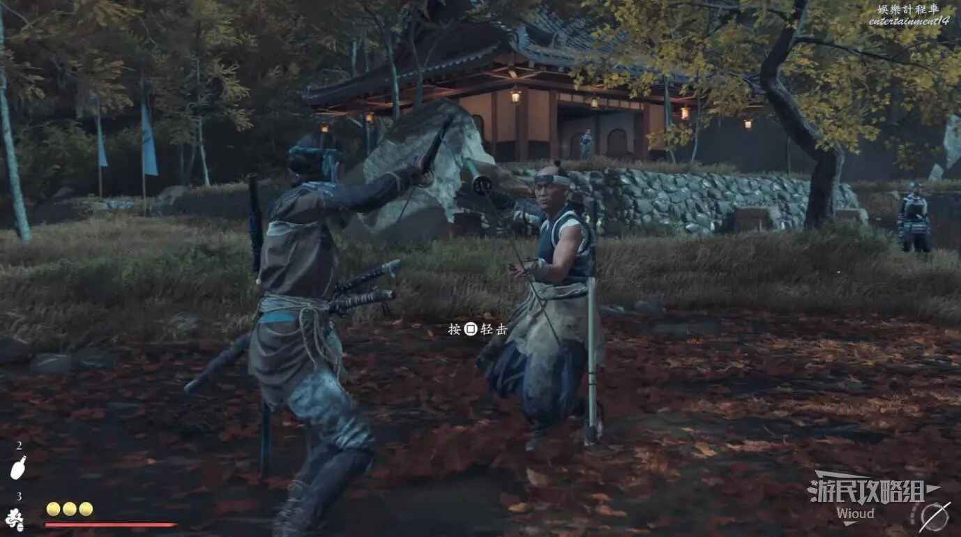 敵人在決鬥樹旁邊的一棵黃樹下面等著,將他擊敗可獲得【武藏之不動心護身符】。