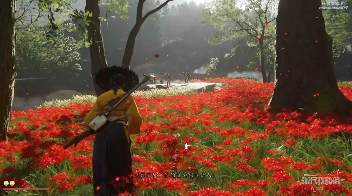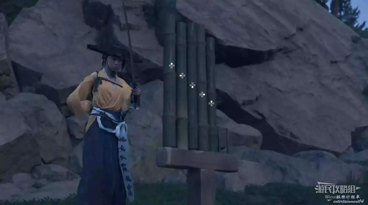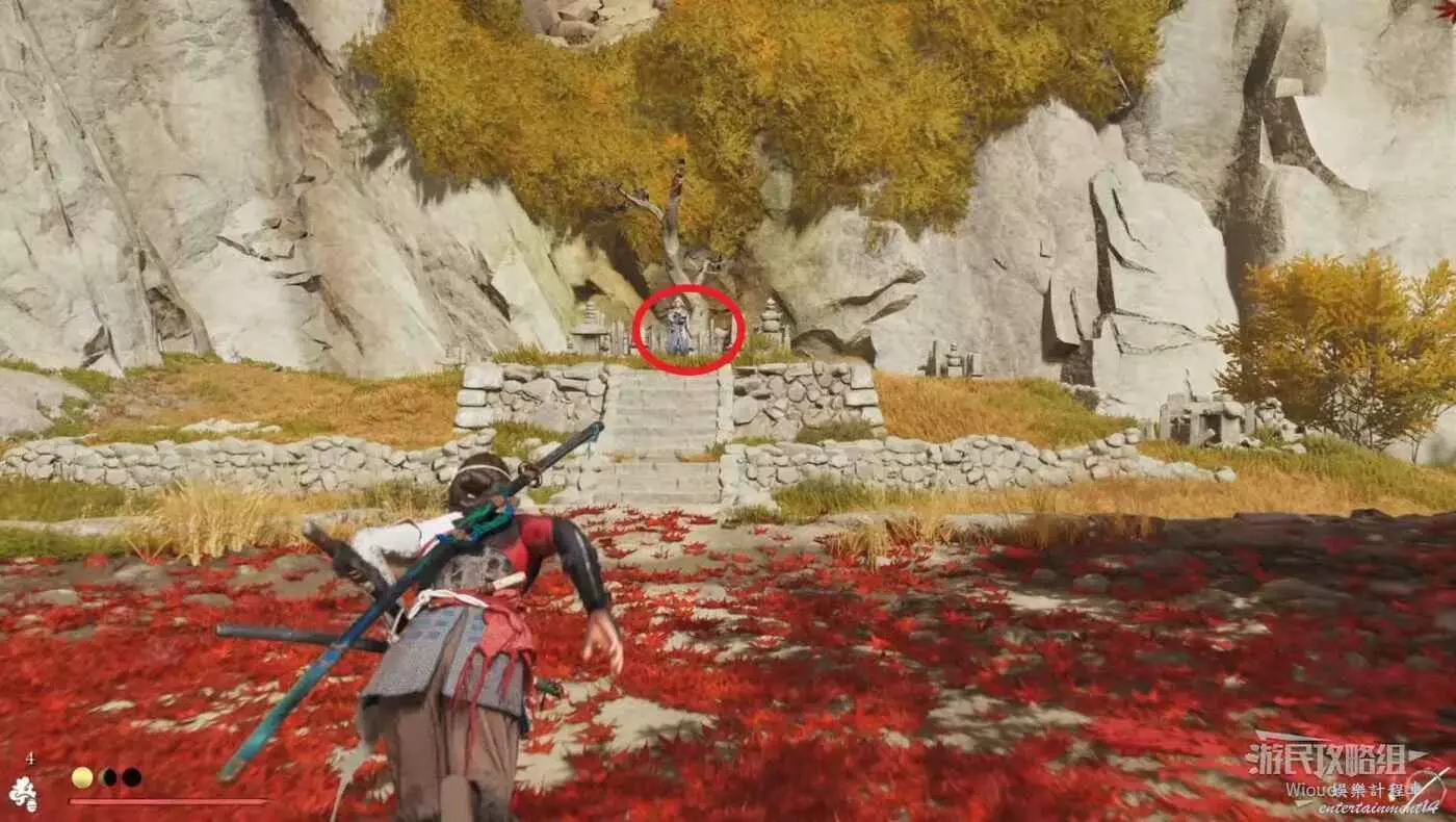 敵人在決鬥樹旁邊的一棵黃樹下面等著,將他擊敗可獲得【武藏之不動心護身符】。