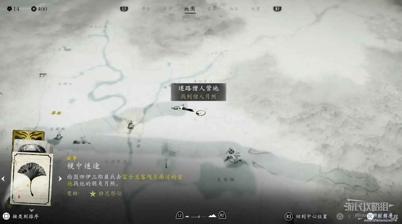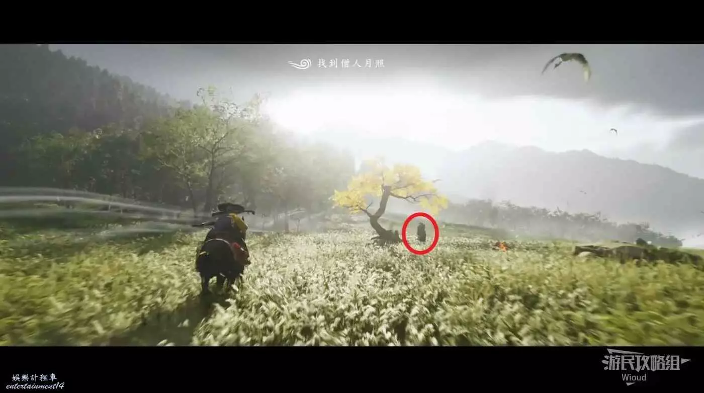 選擇對應任務卡片,走到指引點會發現僧人月照就在銀杏樹下看著什麼東西。