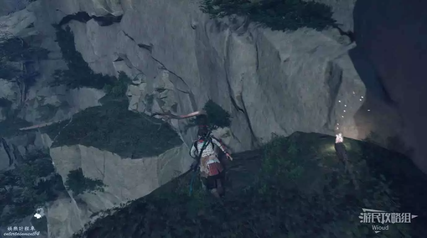 來到目的地和一個白髮NPC互動,跟著NPC走到一個攀附點前,跟著白色印記往下爬。