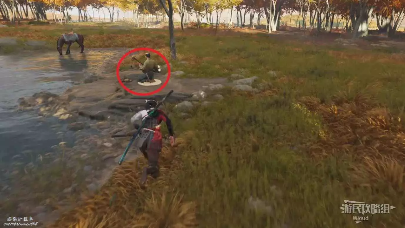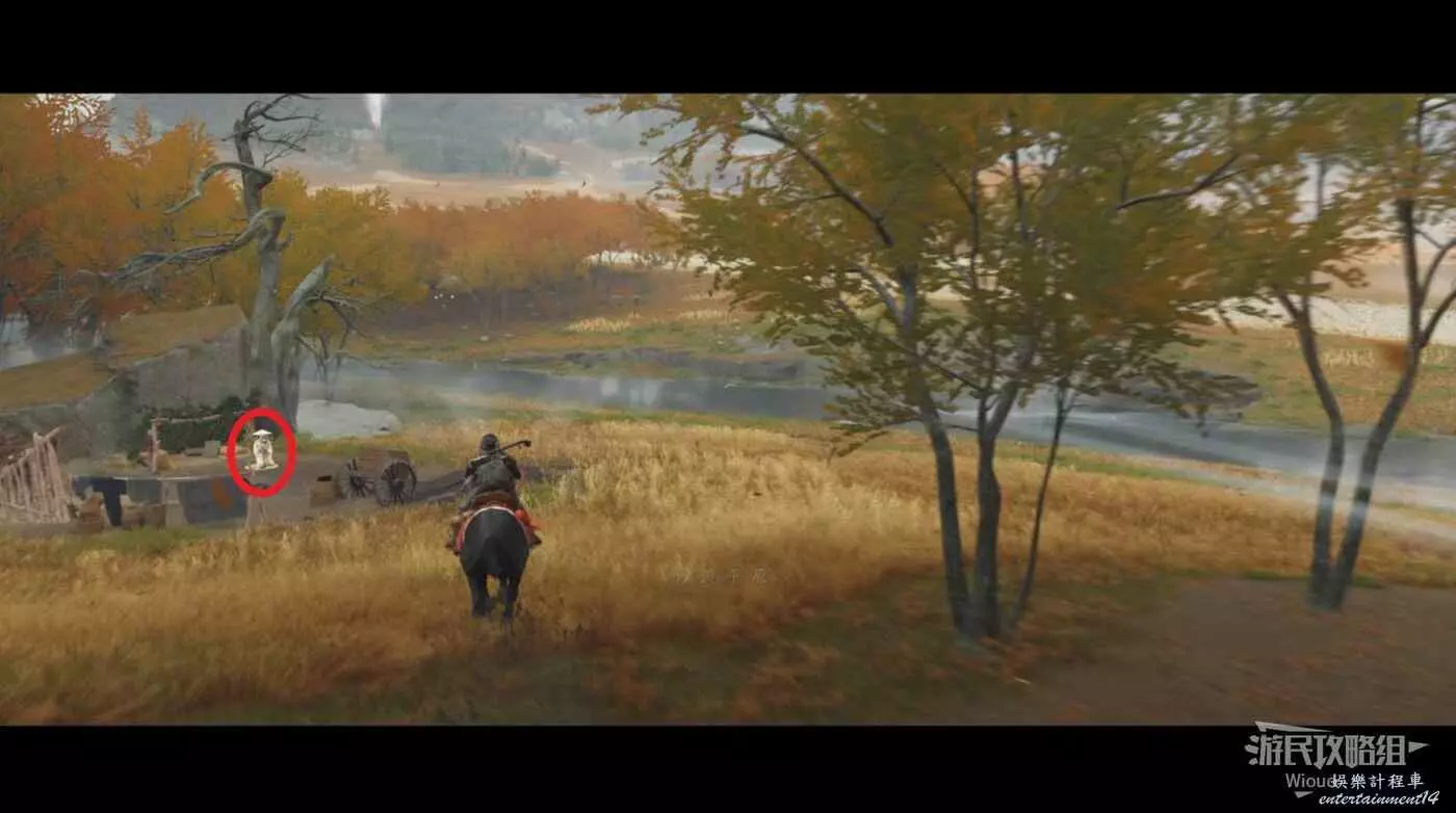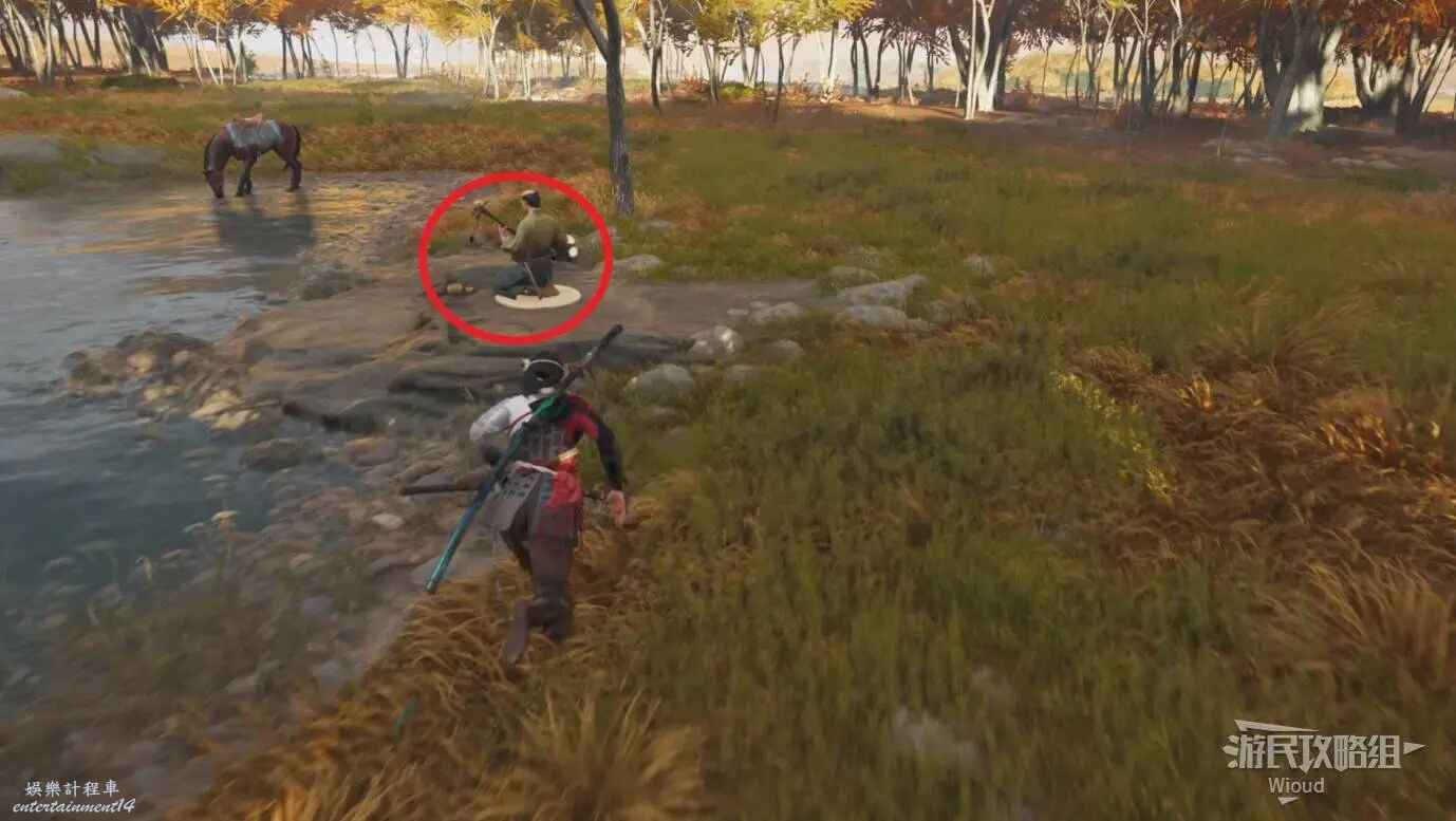 往太郎那移動時,在下圖位置可以找到一個牽馬的NPC。
