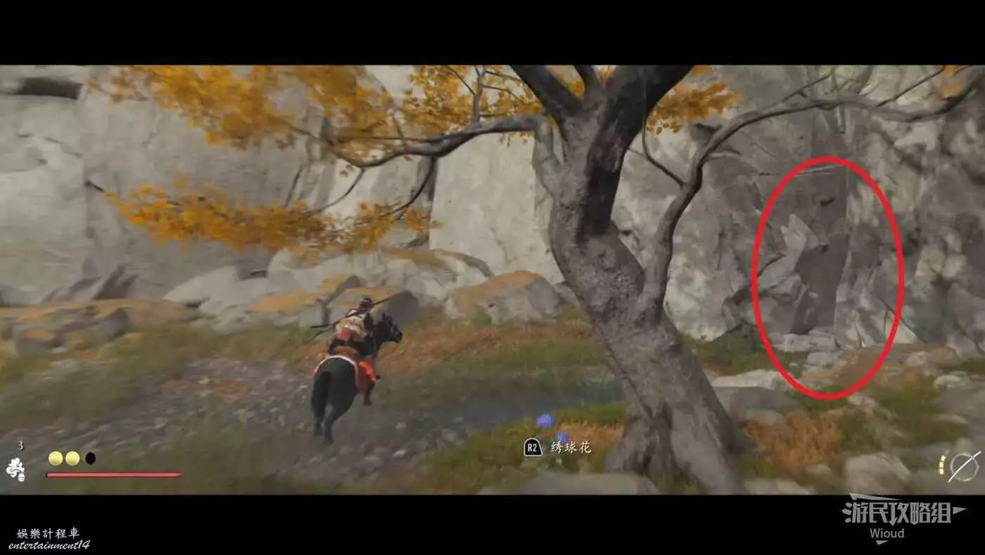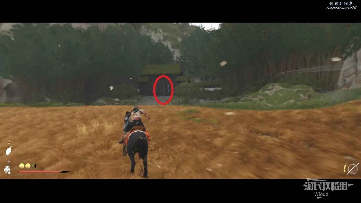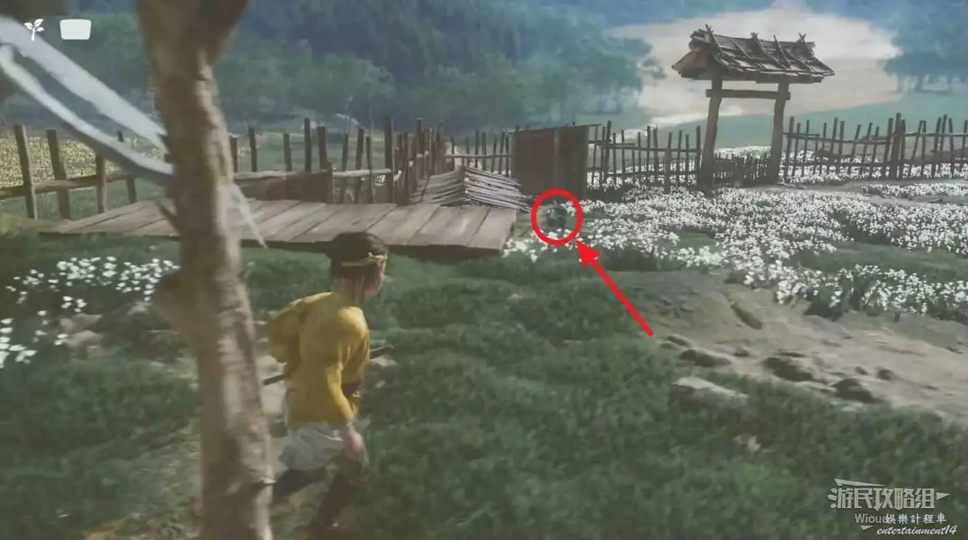 往太郎那移動時,在下圖位置可以找到一個牽馬的NPC。