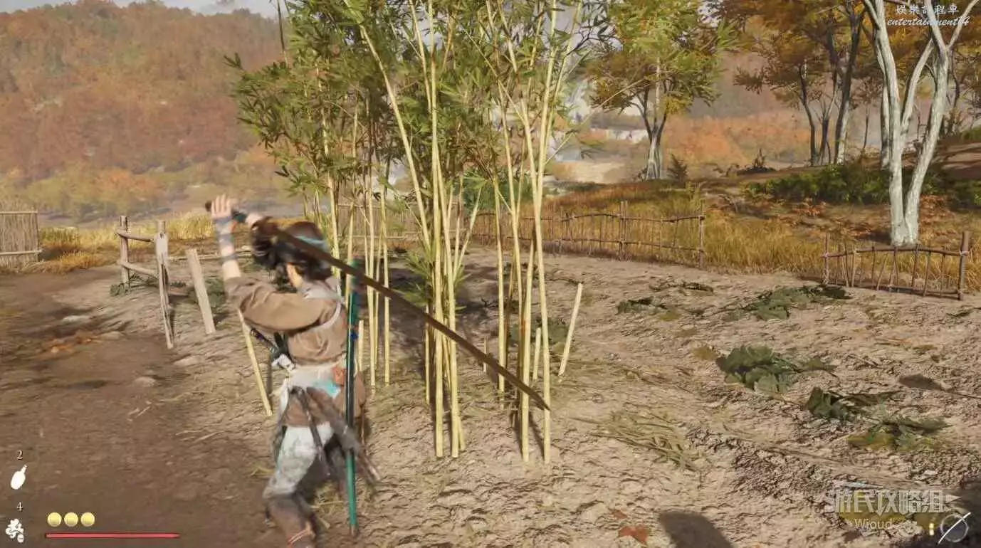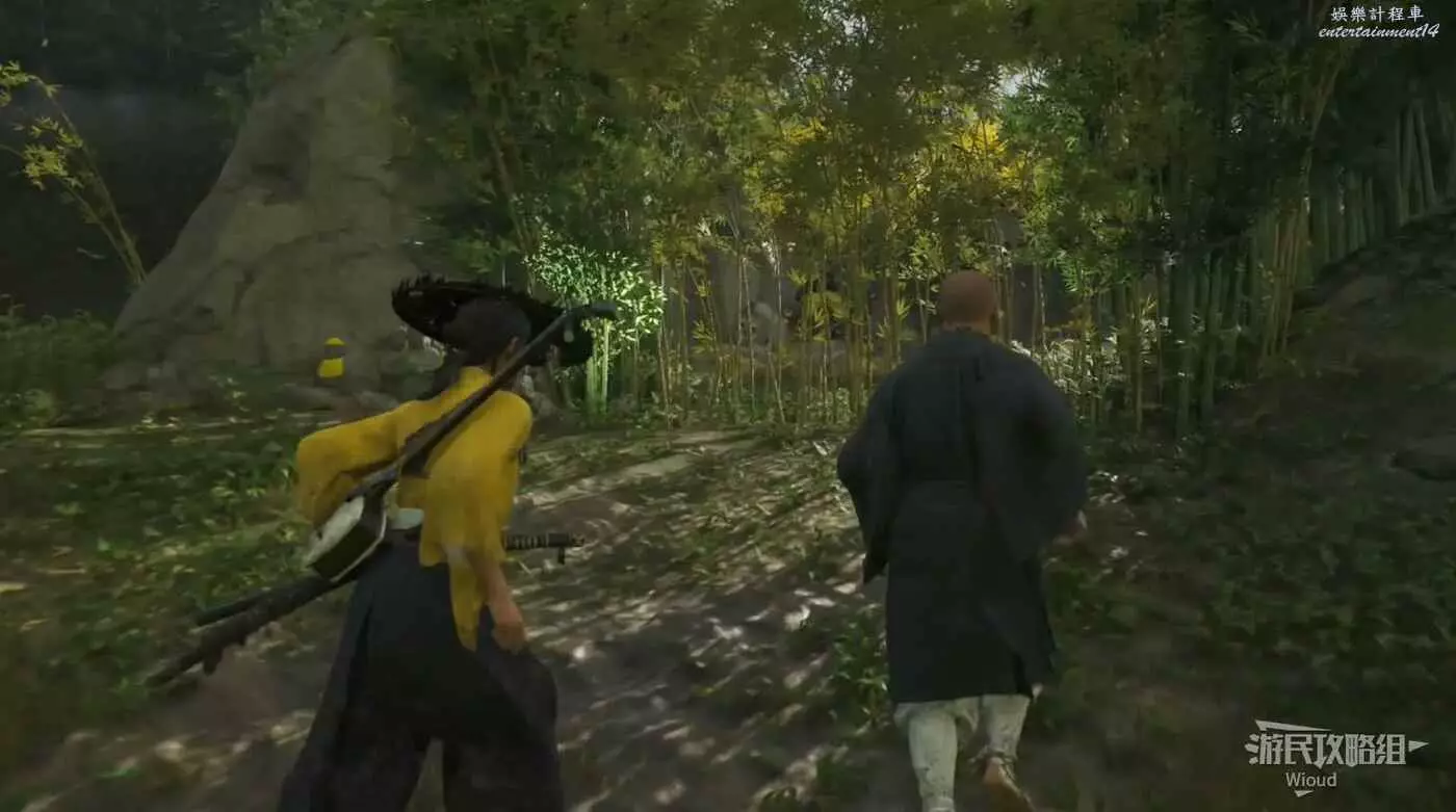 跟著僧人走到一片竹林,用到攻擊發黃的竹子開一條新路。