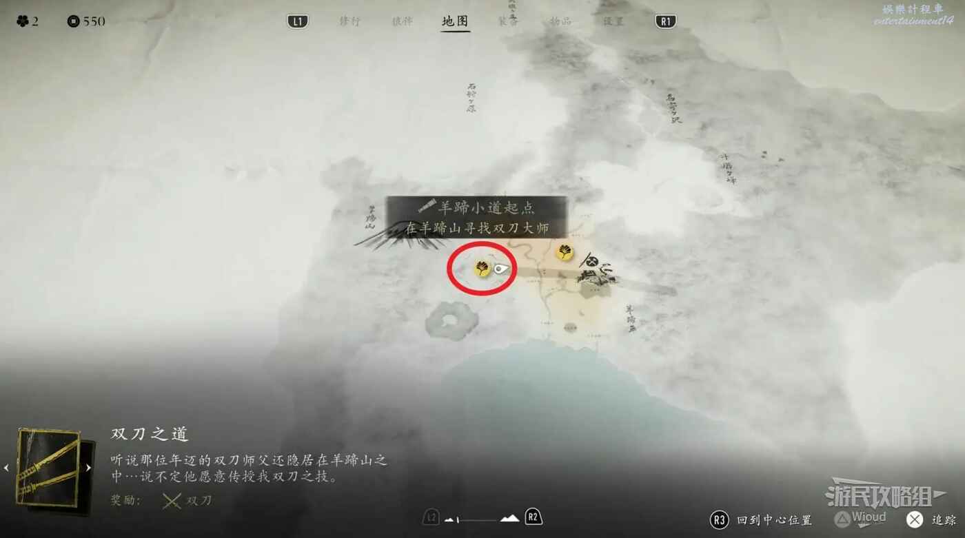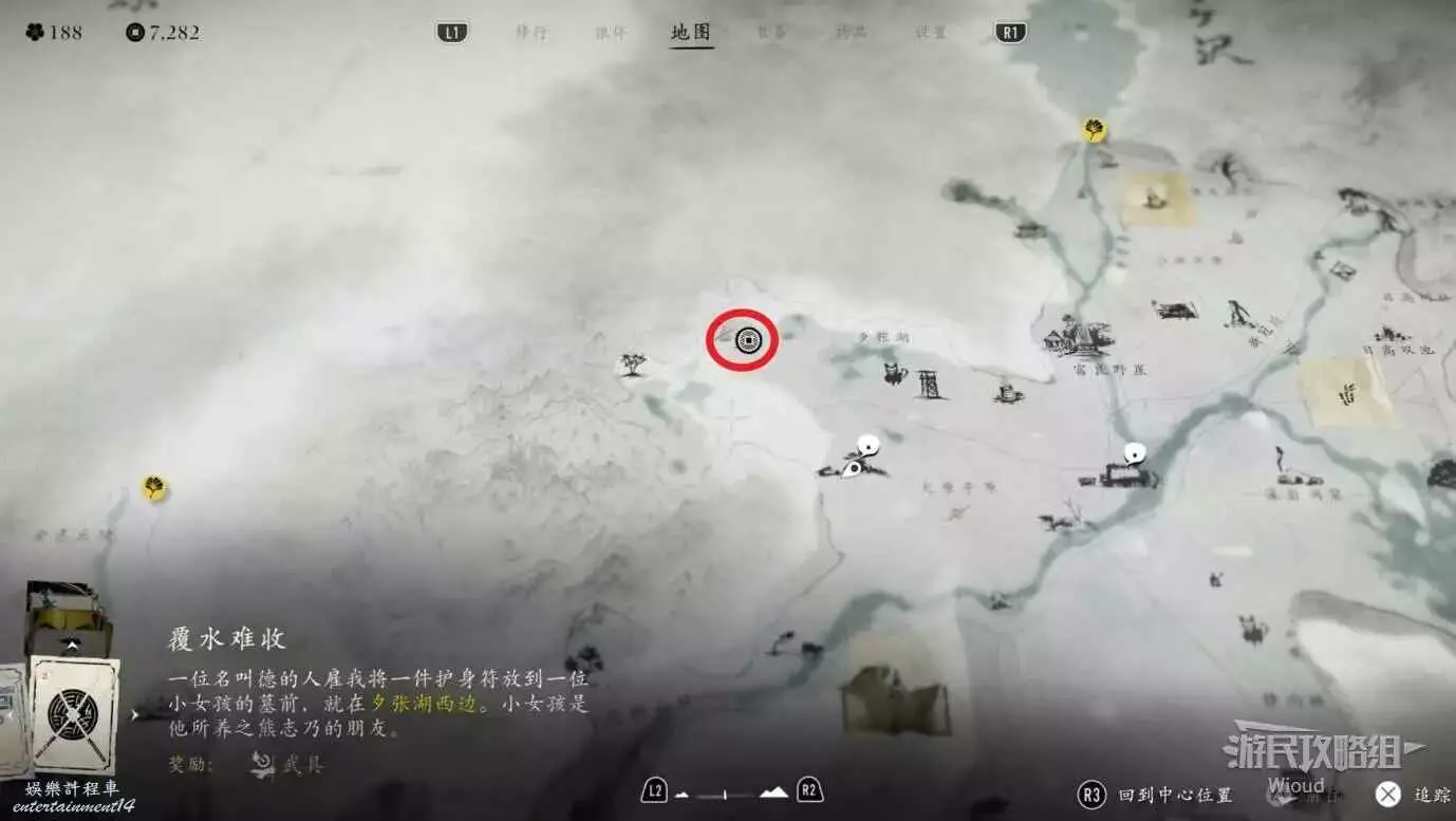 地圖選擇左下角卡片為【故道】,往左邊黃圈位置走。