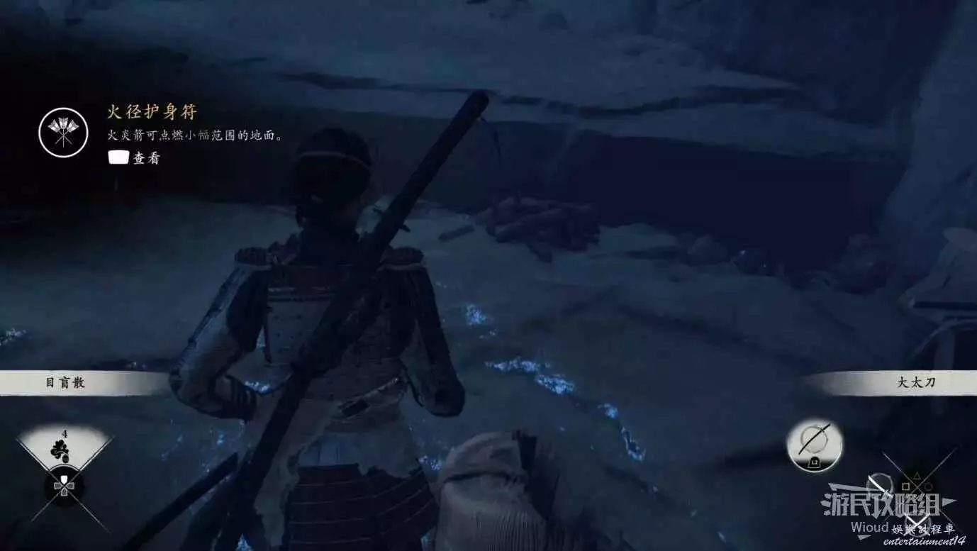 和篝火互動前,把之前拿到的所有武藏系列護符全部裝上。