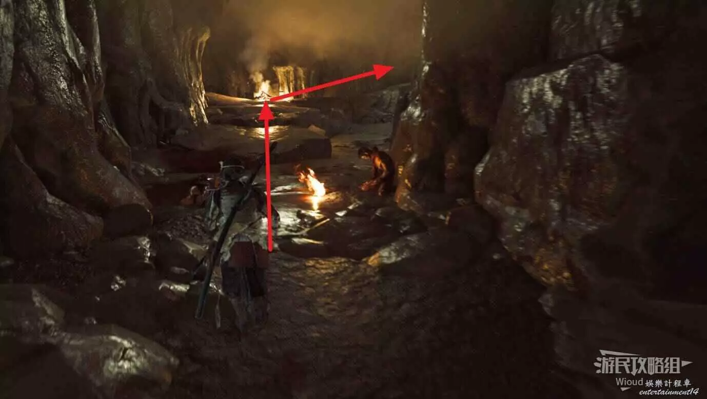 完事往目標塔樓右邊走,不遠處遇到一夥盜墓賊,擊敗他們後爬樓梯沿路走。