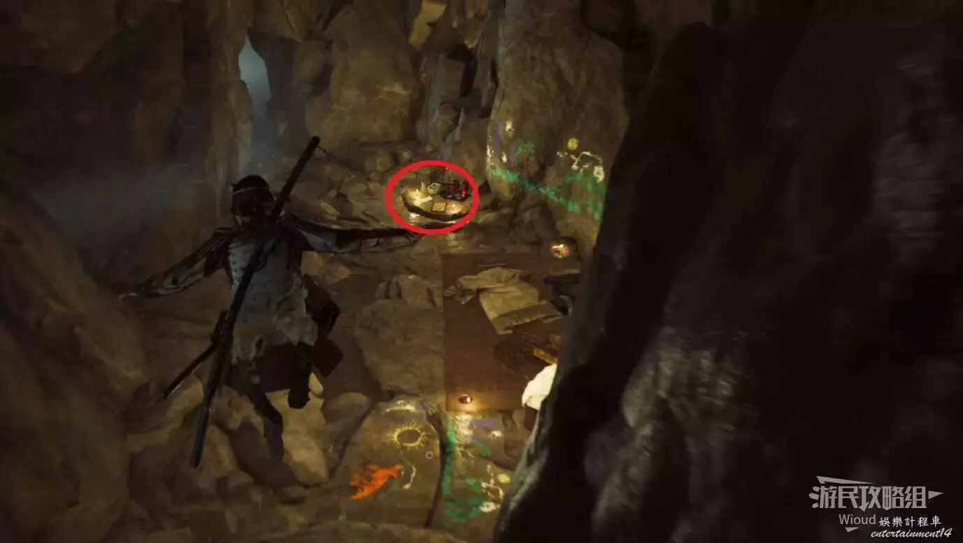 看到第二波盜墓賊時靠近觸發劇情,彼岸花大將會把他們直接帶走,我們只需要走到下圖所示位置和信互動獲得【刻印鑰匙二】。
