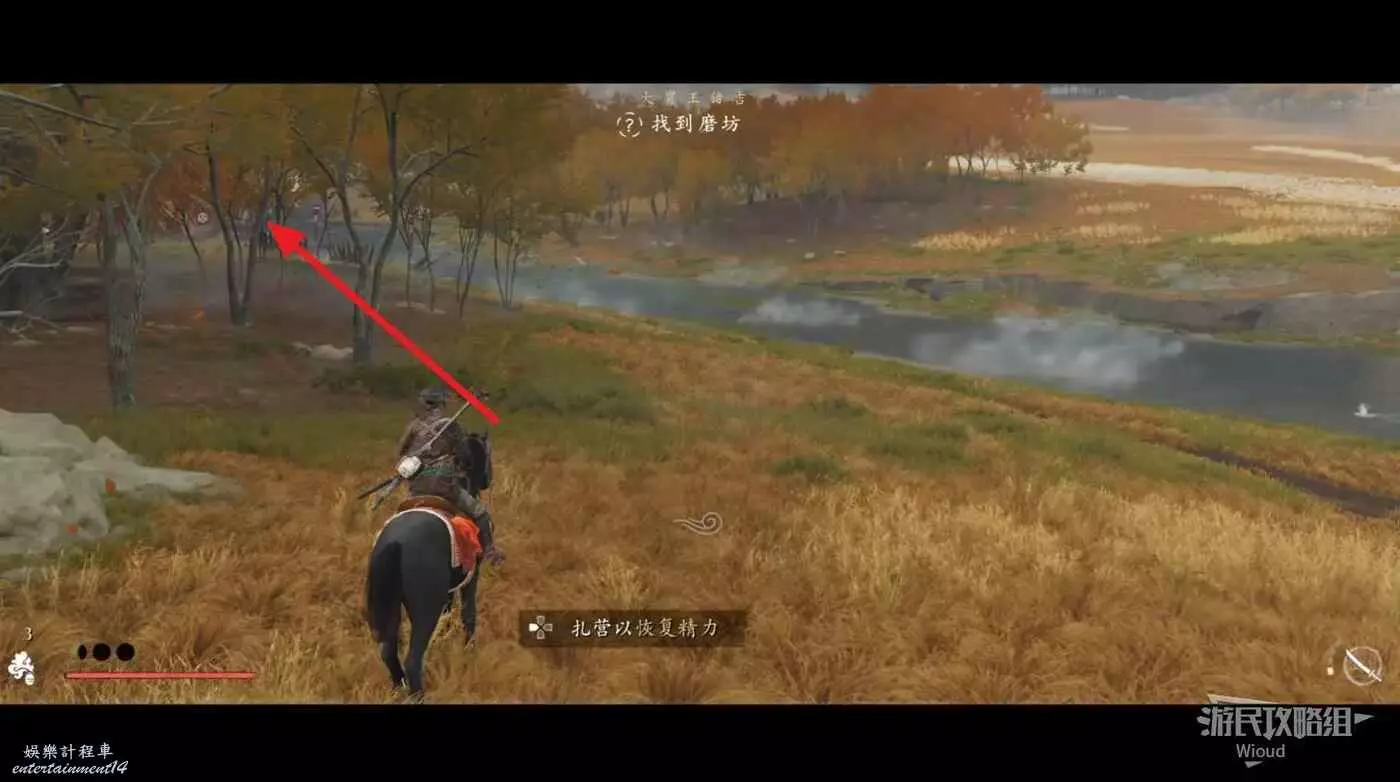 戰鬥結束去和NPC對話,騎馬走到河邊,終點觸發回憶。