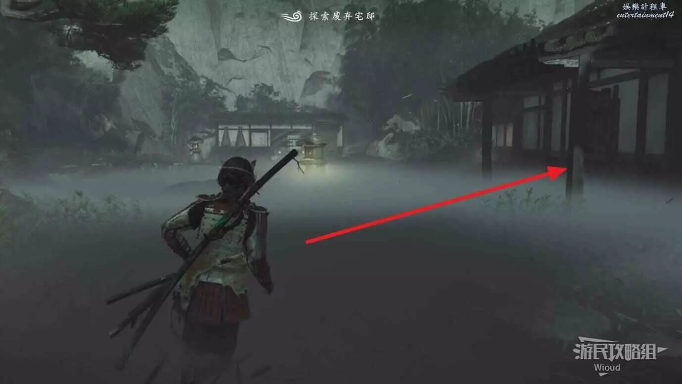 看到一個小屋後,繞到另一面進入小屋,和門口的刀鞘互動觸發劇情。