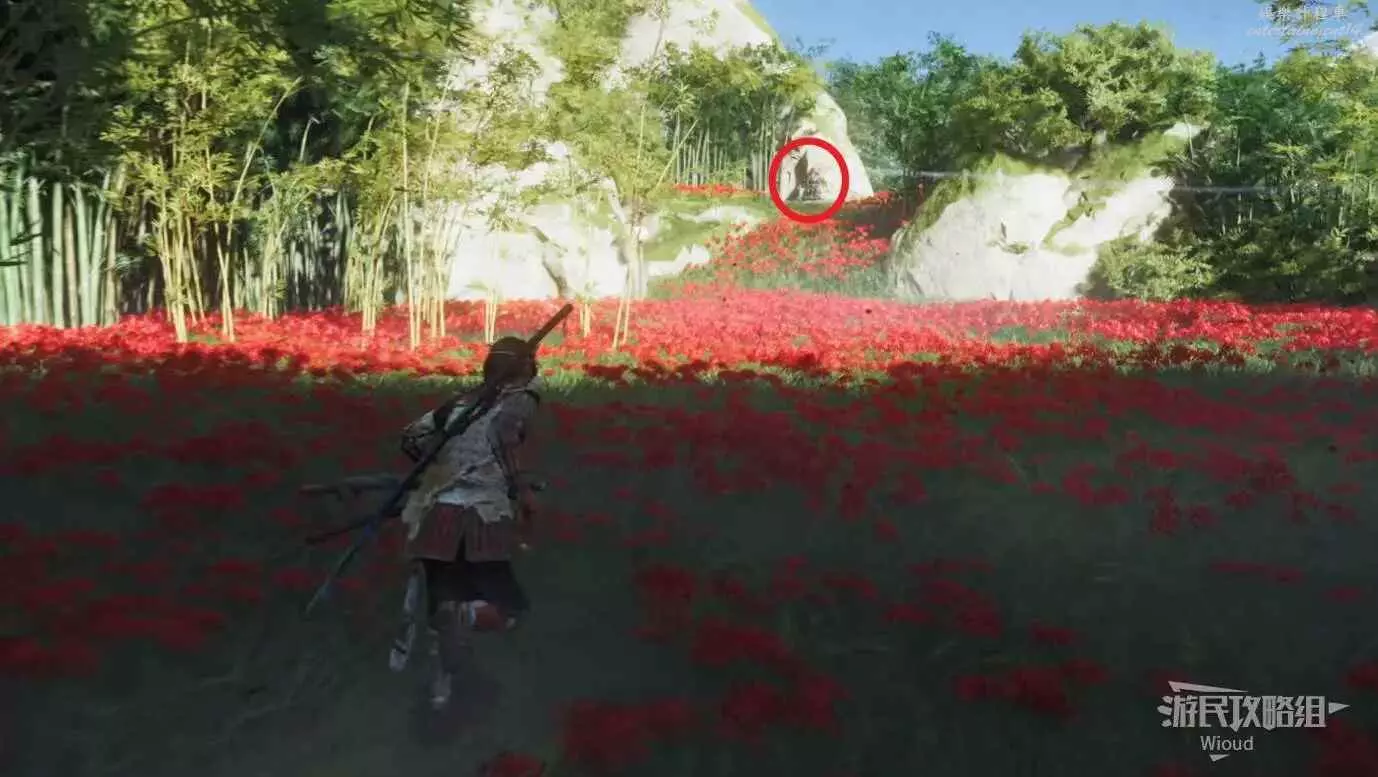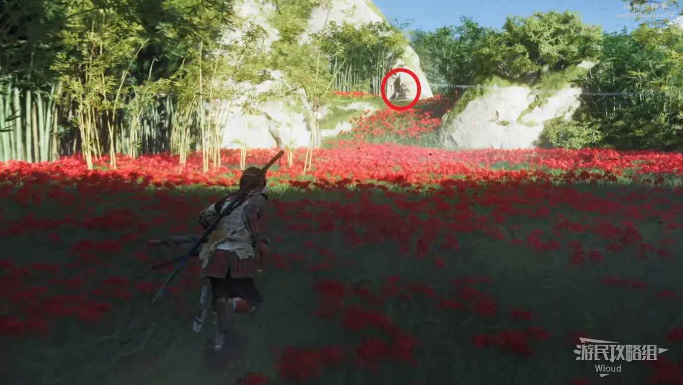 跟著長彼岸花的路走,重複幾次即可完成解謎,最後在竹場中間可拾取【刻印鑰匙三】。