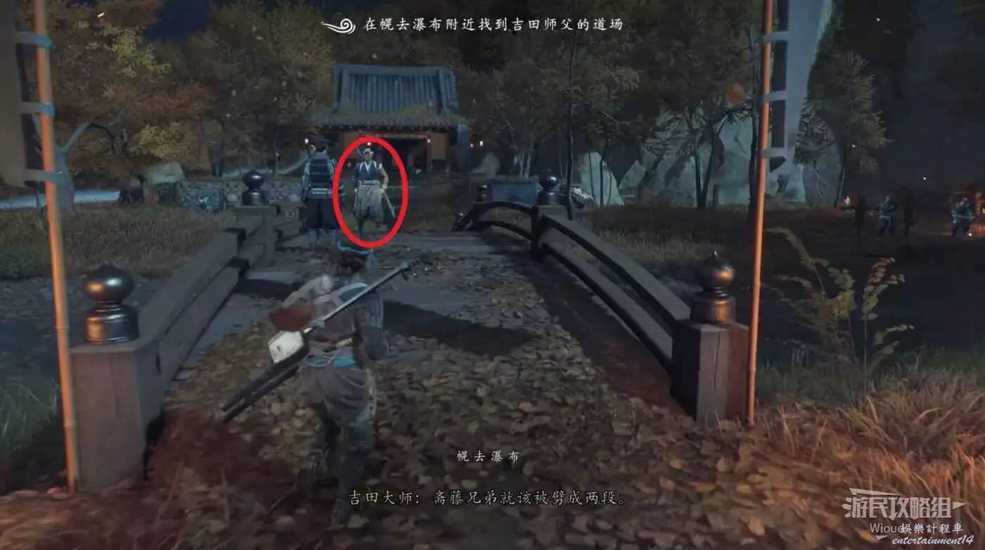 畫面一轉,一群浪人過來襲擊橋樑,直接過去把他們幹掉,和商人對話再和橋上的武士對話完成任務。