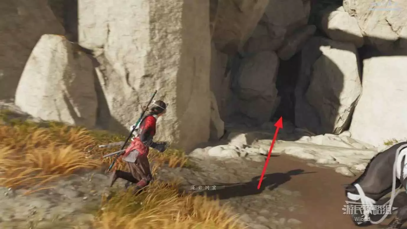 完事繼續根據風鈴的提示指引,走到目的地爬懸崖邊的樹杈往下走,沿路走到底部鑽牆縫進一個洞穴。