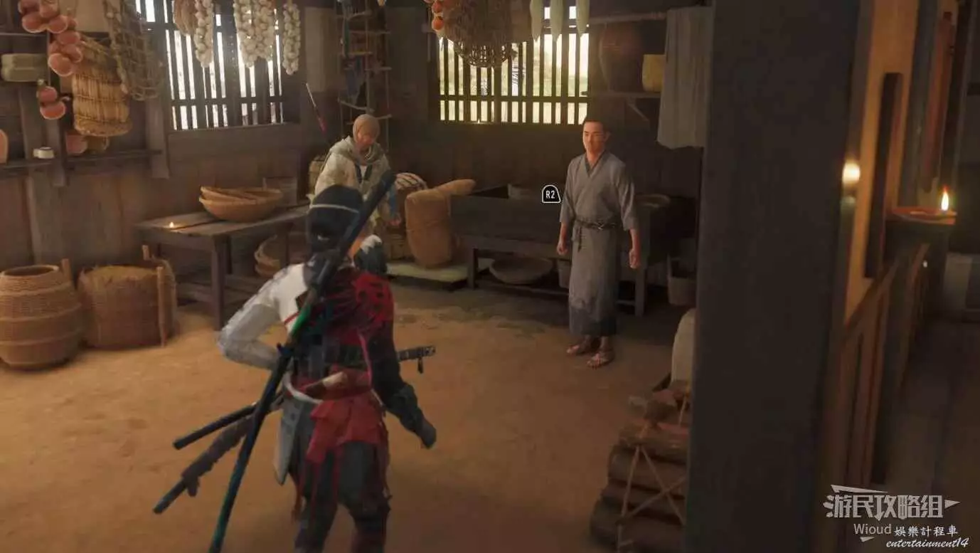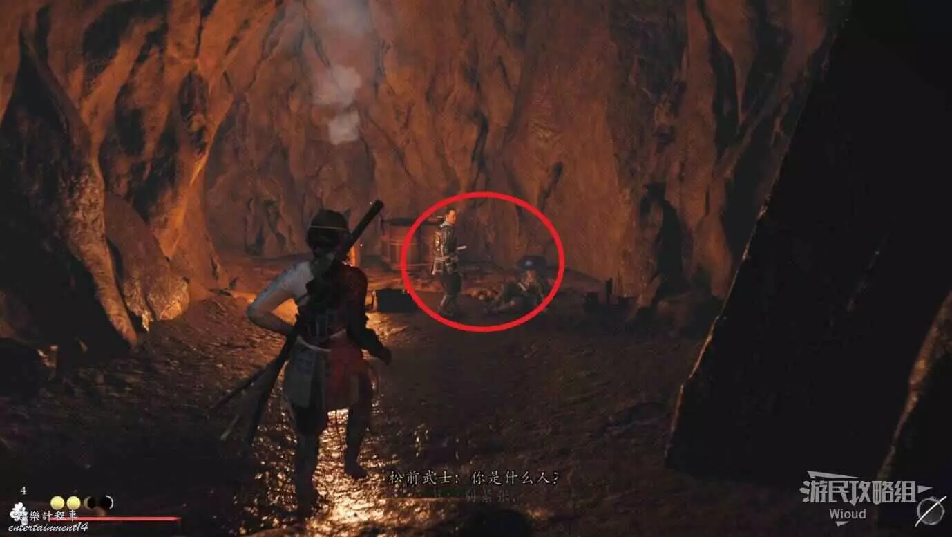 和旁邊被扒光衣服的武士對話,完成任務。