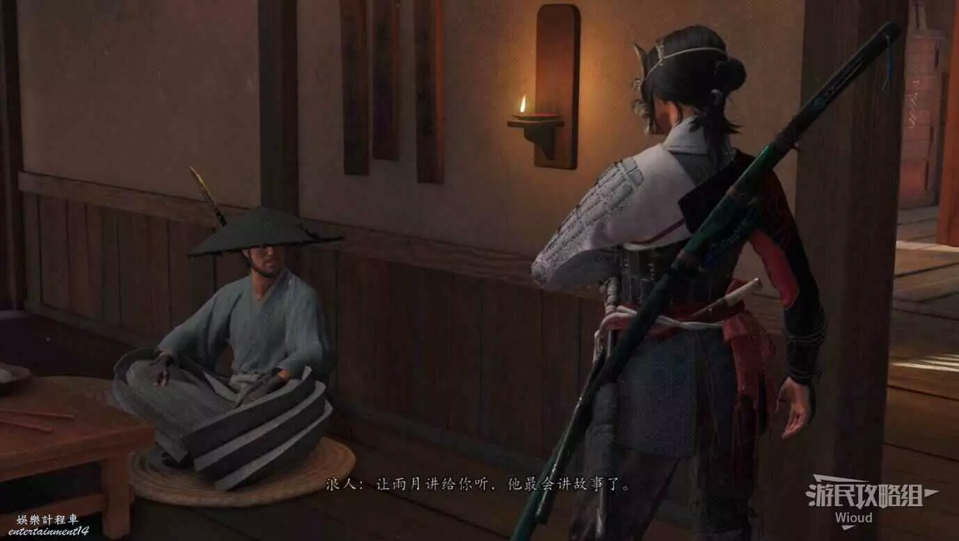 來到神秘之門前,鑽入門縫觸發和雨月的談話,他會告訴我們這裡發生的故事。