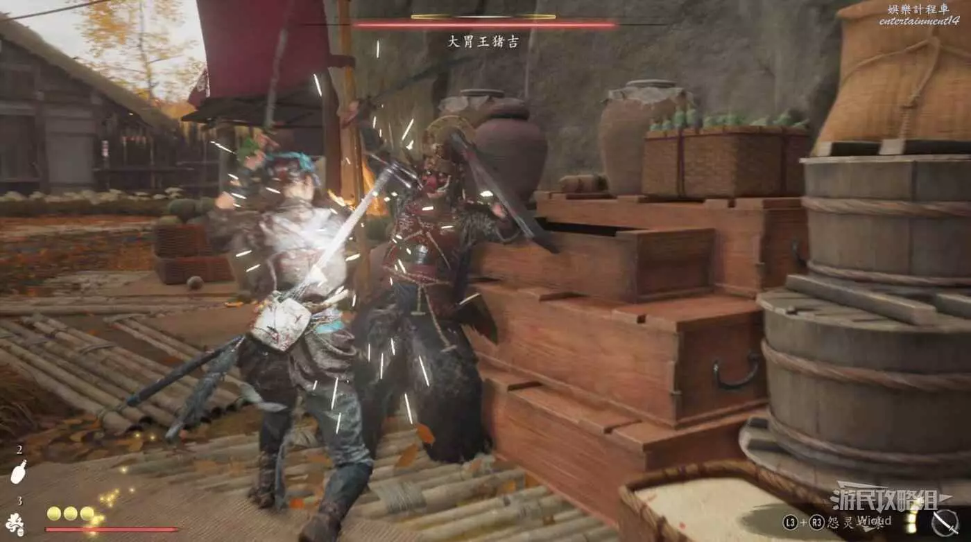 走到目的地發現有一群齋藤武士休息,這批敵人必須打。